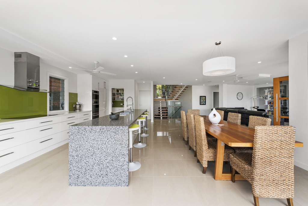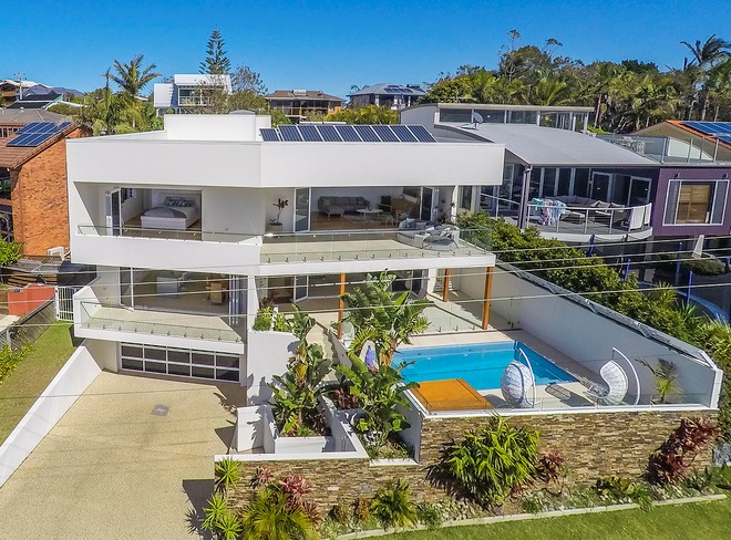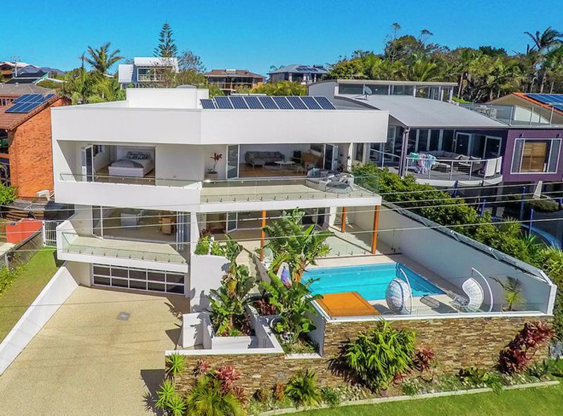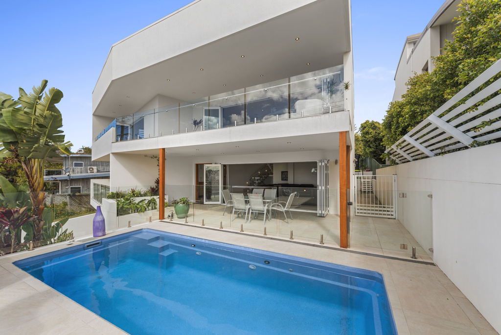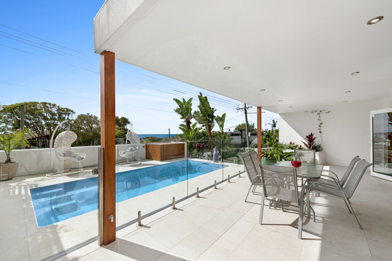 A split level design; it effortlessly blends high-end elegance and functionality, whilst simultaneously embodying lashings of the 'wow' factor. Complete with 5 bedrooms, 3 bathrooms, multiple living areas, premium kitchen, alfresco entertaining area, two large covered decks, triple garage, plus north facing in ground pool on a fully fenced 581m2; this is one of the Coast's most prestigious upmarket beachside residences.
