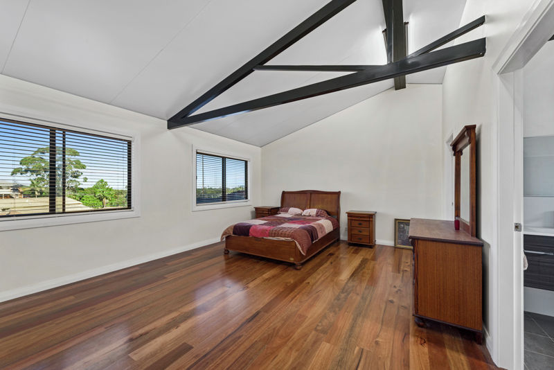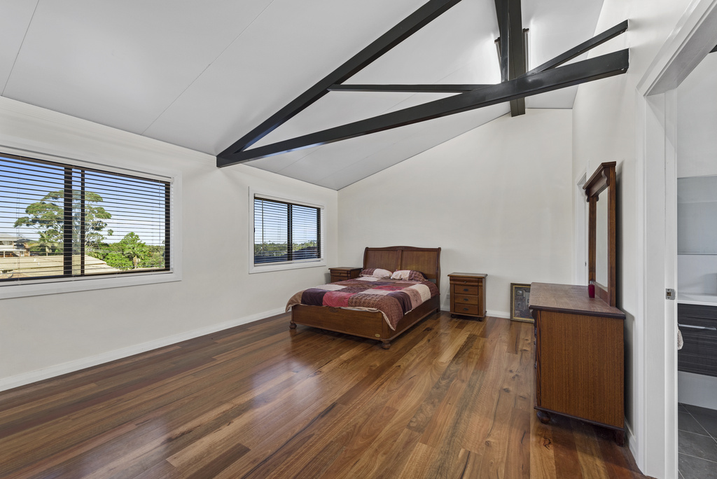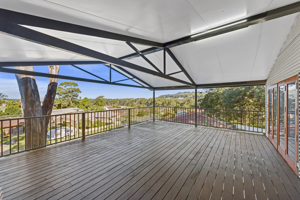 It features 4 bedrooms that include a huge master bedroom, big enough for all your furniture with a wi-robe & stylish ensuite. A downstairs tiled air-conditioned living room provides access to three bedrooms, all with built-ins & finished with timber flooring. The main bathroom & laundry with wc are also on this level. Upstairs is open plan, with high ceilings with exposed steel trusses. The tiled kitchen features a 900 gas stove, & a 900 electric oven, with an outside vented range hood A cleverly hidden powder room is also located on this level. The living area has timber floors & timber bi-folds that open onto a massive 6 x 7.5 mtr verandah with expansive views. Watch the lighthouse flickering in the night sky whilst entertaining your friends & family from this elevated position.