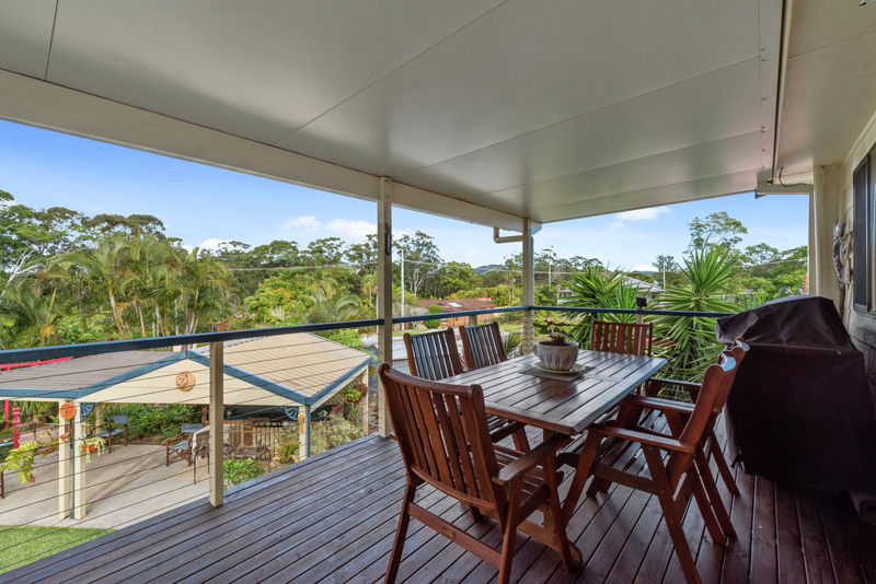Immaculately presented & maintained this solid rendered brick & tile home has been created for ease of living and is perfectly designed to suit our North Coast temperate climate & outdoor lifestyle. There are three large bedrooms with fans & built-ins, plus an office. Upstairs the bathroom has been fully renovated, floors polished & new appliances installed. The living areas are connected to 3 verandahs perfectly positioned for all seasons, to harvest sunshine, shade & a garden vista. Established tropical gardens, with bird aviaries/ferneries, ponds, a covered BBQ area & lush green lawns surround this home. This flat elevated north facing 1096m2 block has easy street access to the large triple garage. "Sunset Lakes Estate" in Woolgoolga is close to Woolgoolga Lake & creek with walking tracks to the beach, bushland, Woolgoolga town centre, High School, tennis courts & sporting fields. It is one of the most desired areas of Woolgoolga so if this home appeals, don't delay inspecting by calling today.