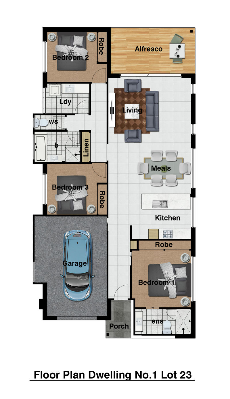 Sliding glass doors in the living area flow out to an outside Alfresco area to enjoy outdoor living.