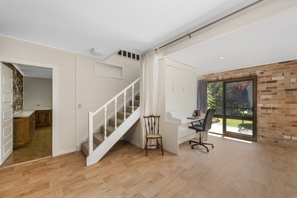With its established, easy care gardens and north facing, full length deck overlooking the property, bathed in sunlight in the winter months and well shaded in the summer, the deck opens out from the kitchen and is perfect for those who enjoy outdoor dining & entertaining. With the residence situated high on the block, it leaves ample room for a range of outdoor hobbies, fruit trees, vegetable gardens, chooks or even pet grazing animals.