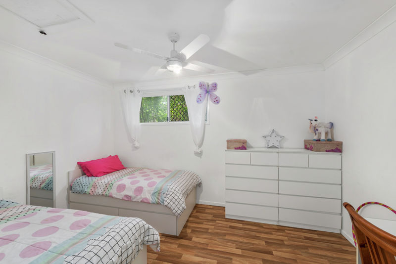This property will be highly sought after. It's not huge but has been tastefully modernised. The original kitchen has had some renovation and the bathroom is nice & modern. The two main bedrooms are bigger than normal these days & each of the two bedrooms benefit from built-in wardrobes and the garage has been converted to a great kids bedroom with plenty of storage. Air-conditioning, 4 electric fans, larger than normal laundry with new storage & bench space and impressive timber floors make this property worth more than a look.