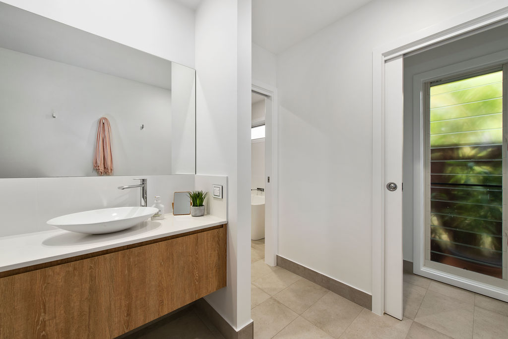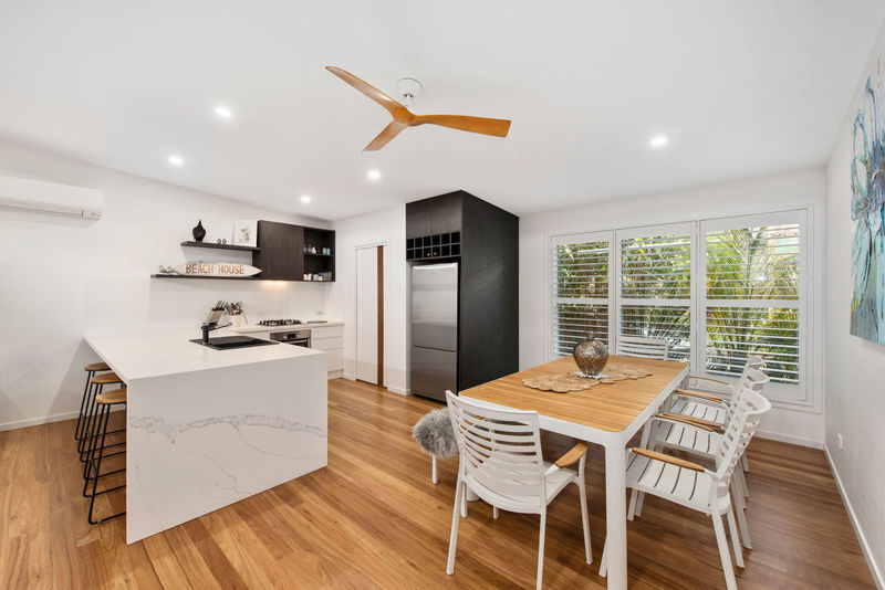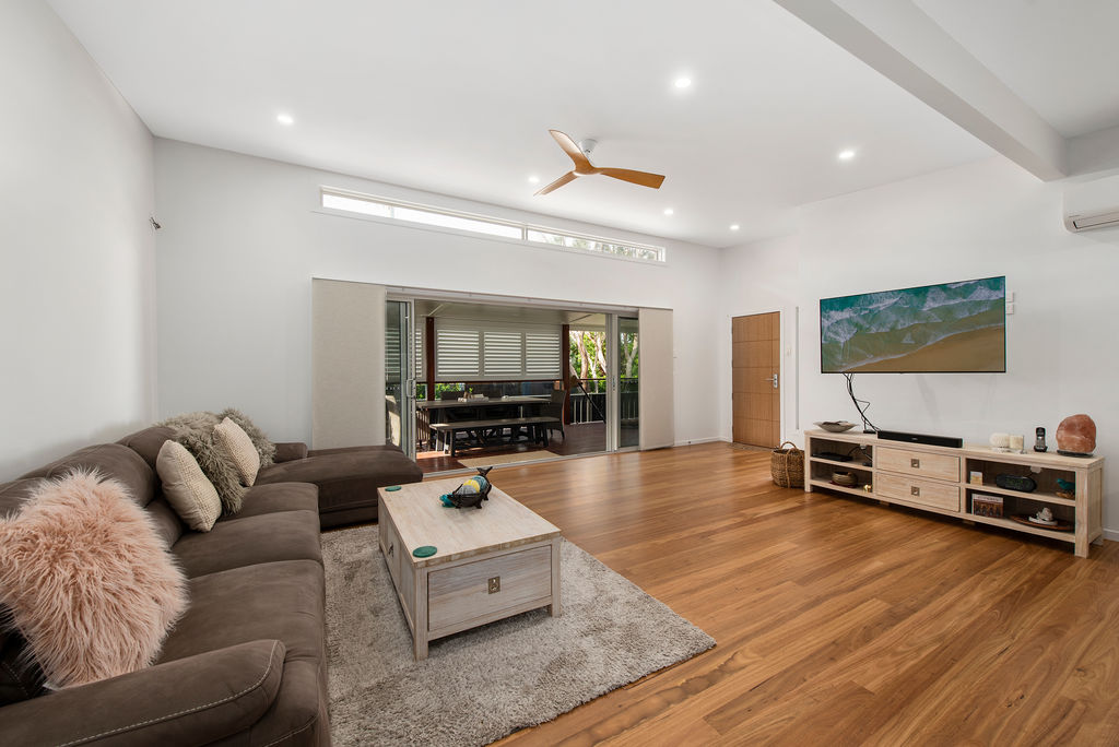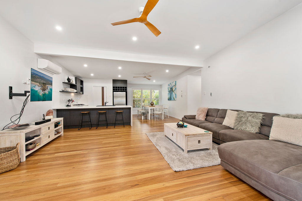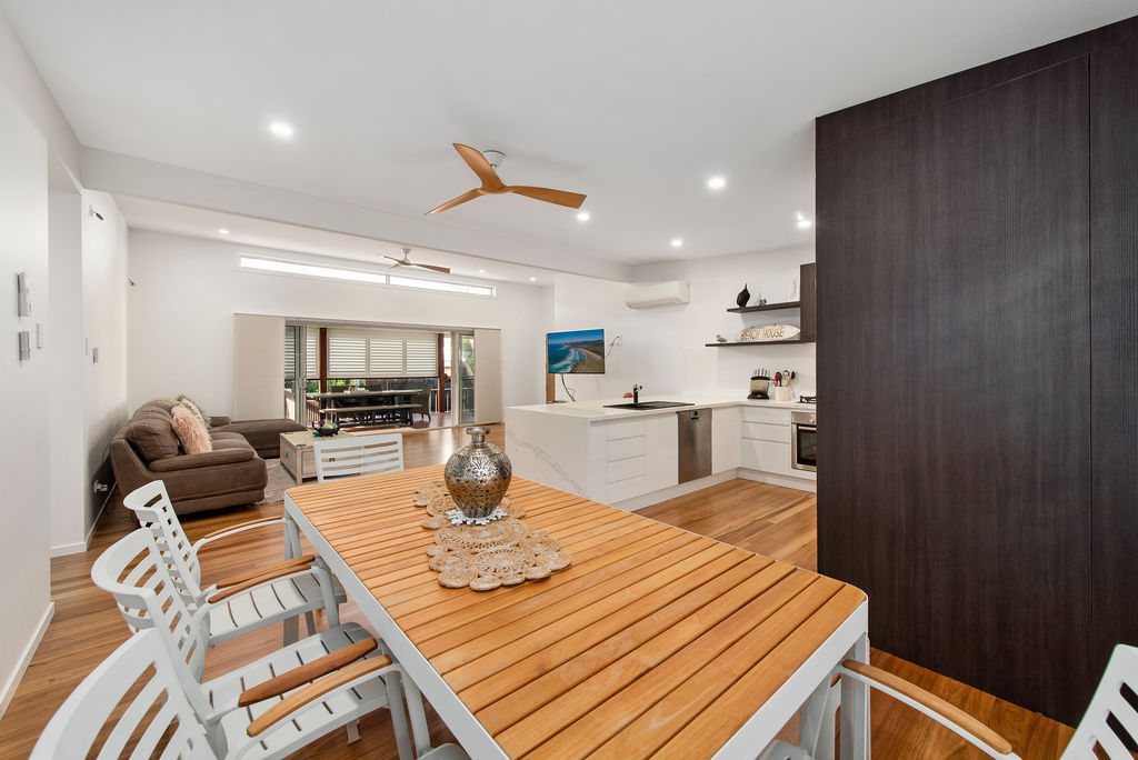 You are greeted with soaring 2.550m high ceilings with square set ceilings & stunning Hinterland Blackbutt timber floors (more scratch resistant) spanning entirely throughout the open plan living & dining.