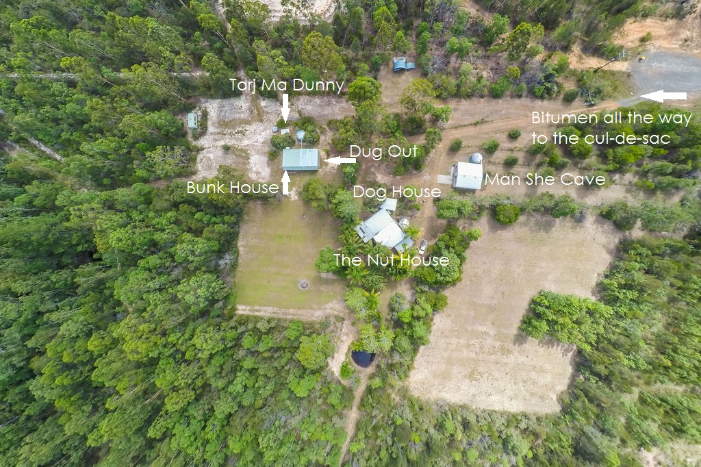 14.3 Ha / over 35.33 acres of bush in one parcel with numerous named cottages/structures with names like The Nut House, Dog Box, The Dug Out, Bunk House, Man She Cave with some located on Sea Eagles Street. This property is full of character and has to be seen. Many walking tracks & quad bike tracks throughout the property.