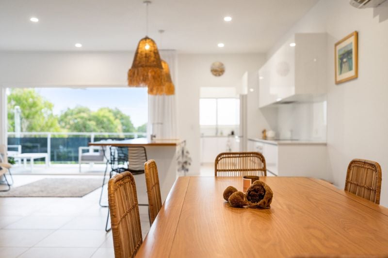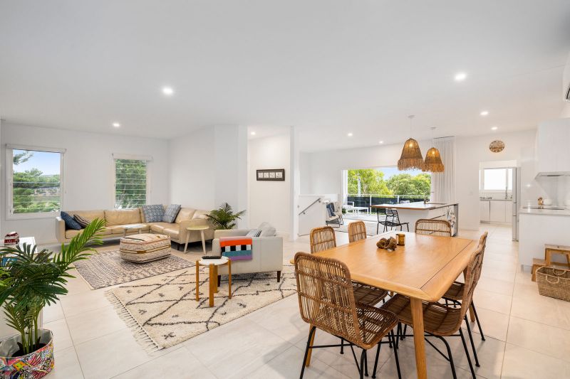 Nestled within the heart of Woolgoolga Sun Crest is within walking distance to Woolgoolgas main street with a selection of cafes, restaurants & boutiques. This cleverly elevated three-bedroom holiday house allows guests to enjoy ocean & island views from the upper level. Showcasing outdoor entertaining areas on both the lower & upper level there is plenty of room for the whole family.