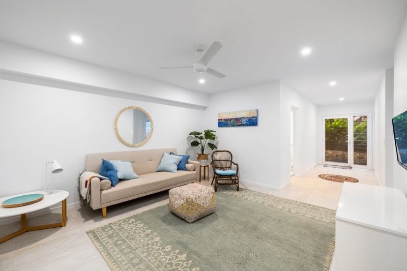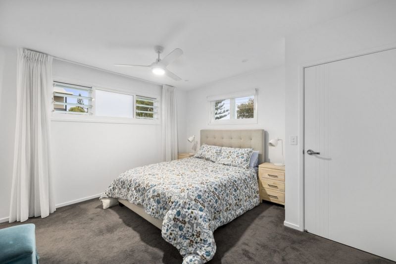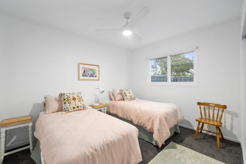 On the lower level of the property, you will find the double lock up garage with internal access, laundry offering both a washing machine & dryer, bathroom with a bathtub & large shower, separate powder room, an open living area & two bedrooms. Both bedrooms offer ceiling fans & built-in robes. In one bedroom you will find a queen bed while in the other you will find two single beds.