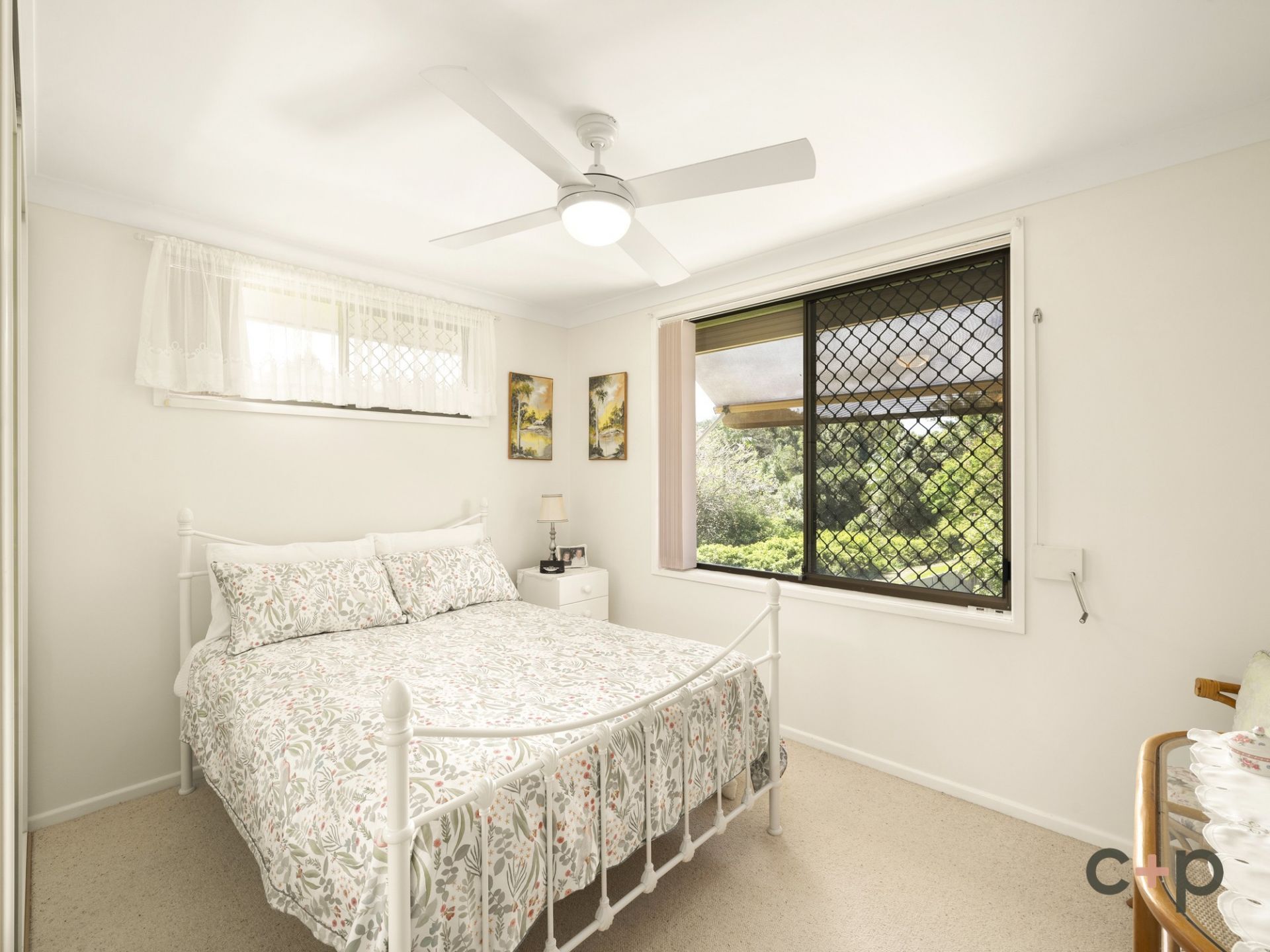 Both bedrooms are fitted with built-in robes and ceiling fans, while the stylishly renovated bathroom doubles as a combined laundry for added functionality. Comfort is assured year-round with reverse-cycle air conditioning, ceiling fans, and a gas bayonet for heating.