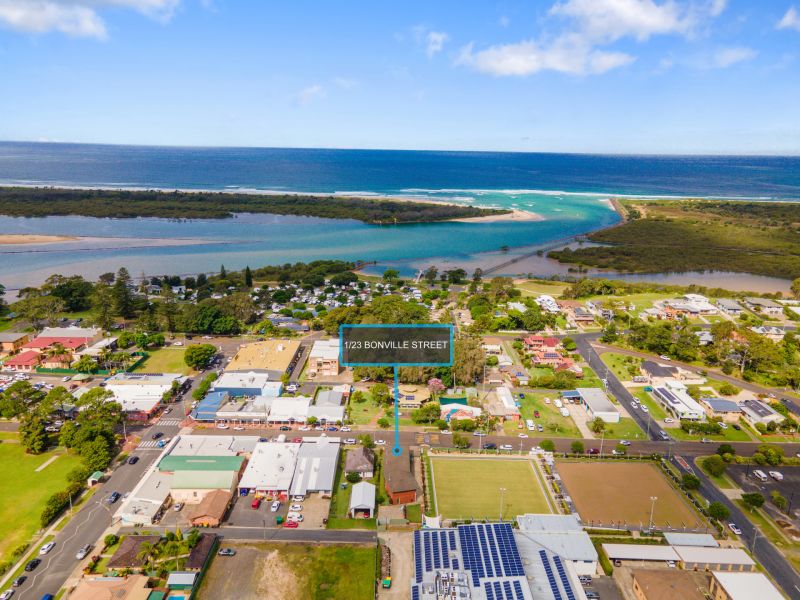 This affordable, ground floor unit comprises of 2 bedrooms, both with built in robes, neat modern kitchen, renovated tiled bathroom, shared laundry, open plan living area which overlooks the Urunga Bowling Green and a single lock up garage with internal access.