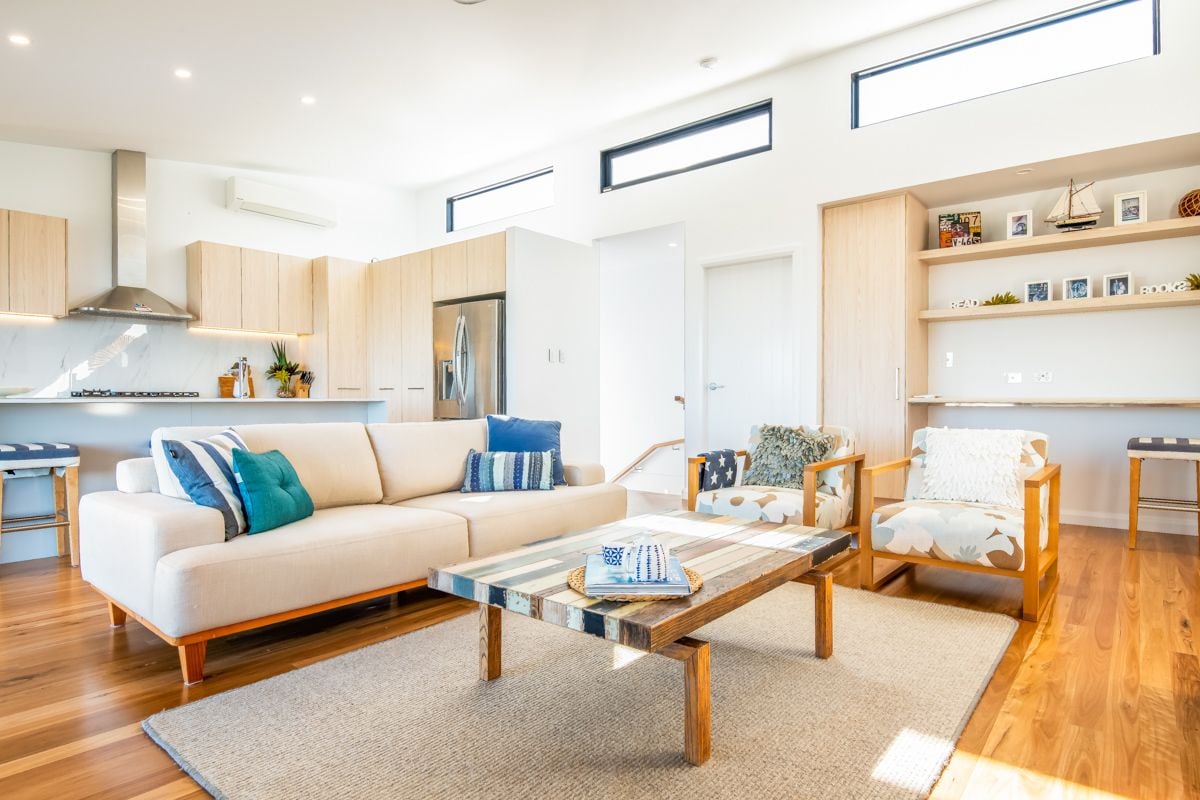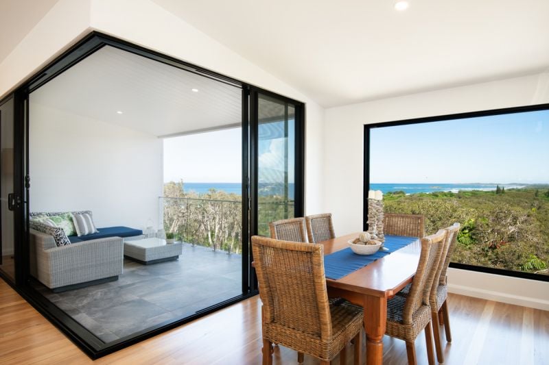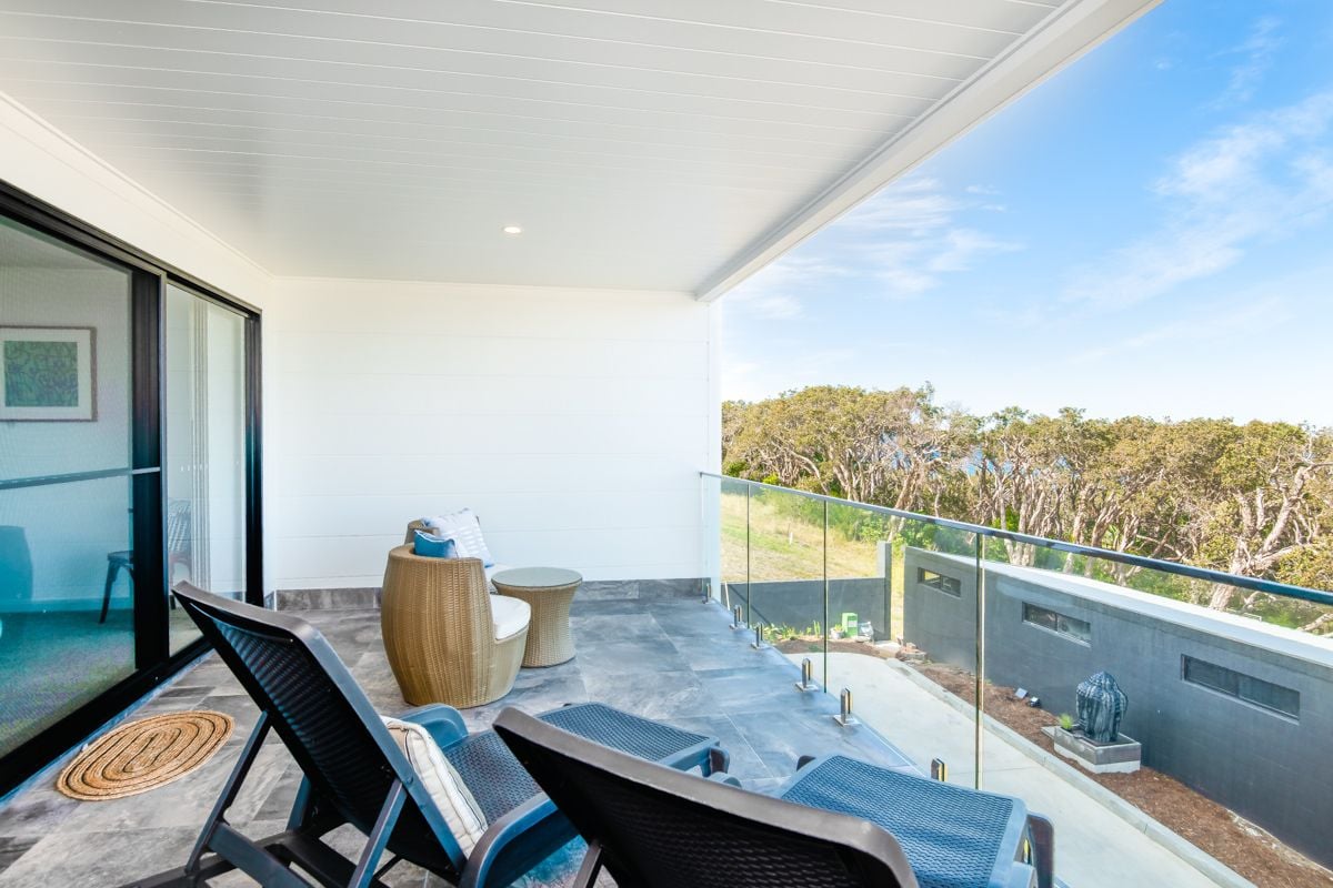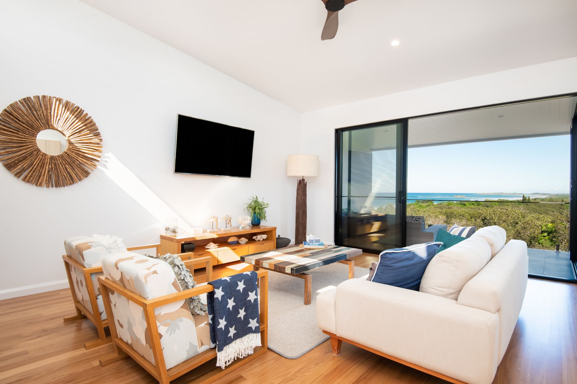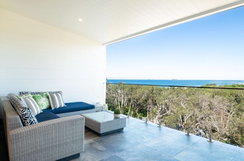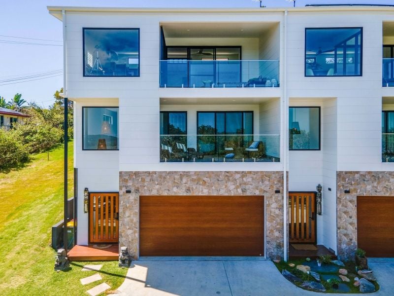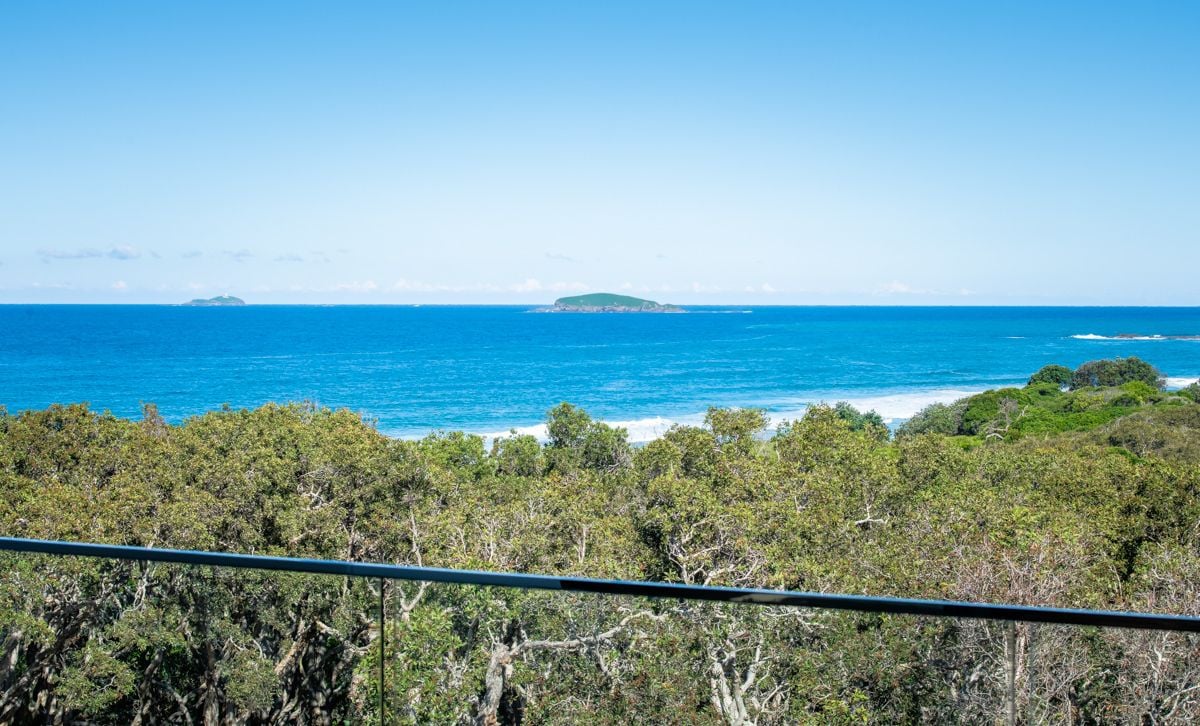This luxurious townhouse located on Woolgoolga Headland offers unparalleled sweeping ocean and island views, watching whales pass by and the sun rising over the Solitary Islands Marine Park each morning.