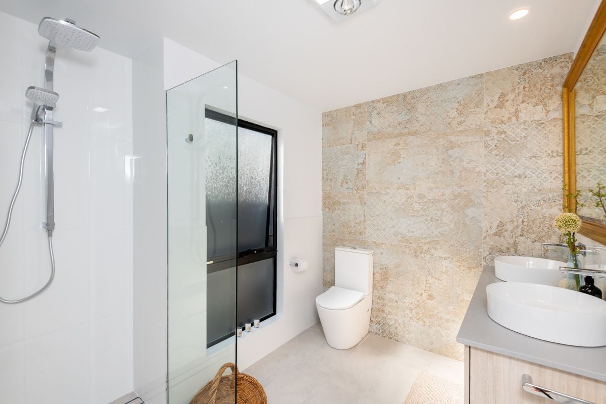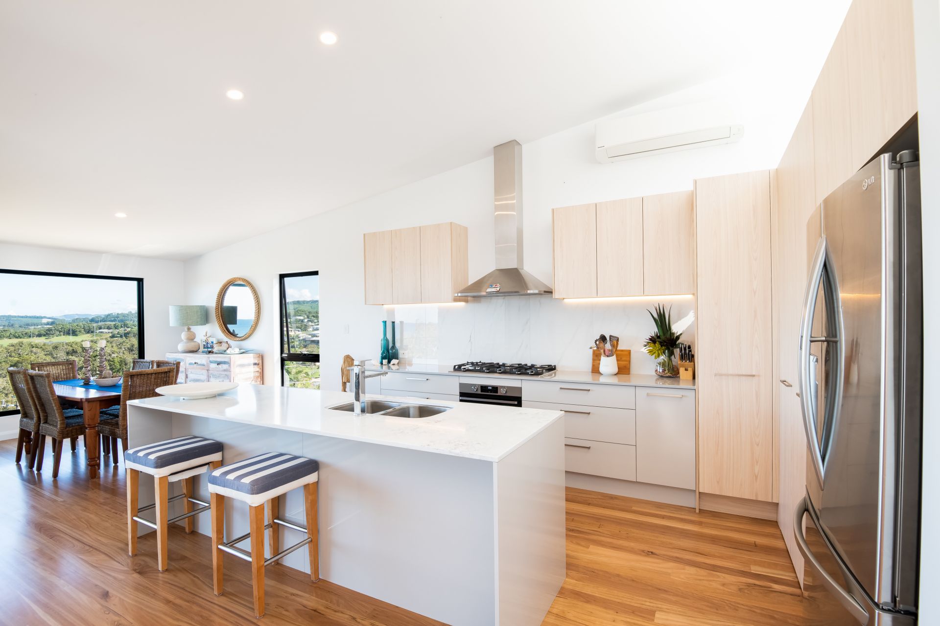 Living space is located on the upper level featuring a gourmet kitchen with stone benchtops, open plan living and dining, and study nook - all flowing through glass stacker doors to the covered alfresco deck. This upper deck offers stunning views of the sparkling ocean and Solitary Islands to the East and green mountain ranges to the West, with no neighbours in sight as the property overlooks native bushland rather than other properties. On this upper level you will also find the master bedroom privately situated on the Northern side of the home with WIR and tastefully finished ensuite with double basins.