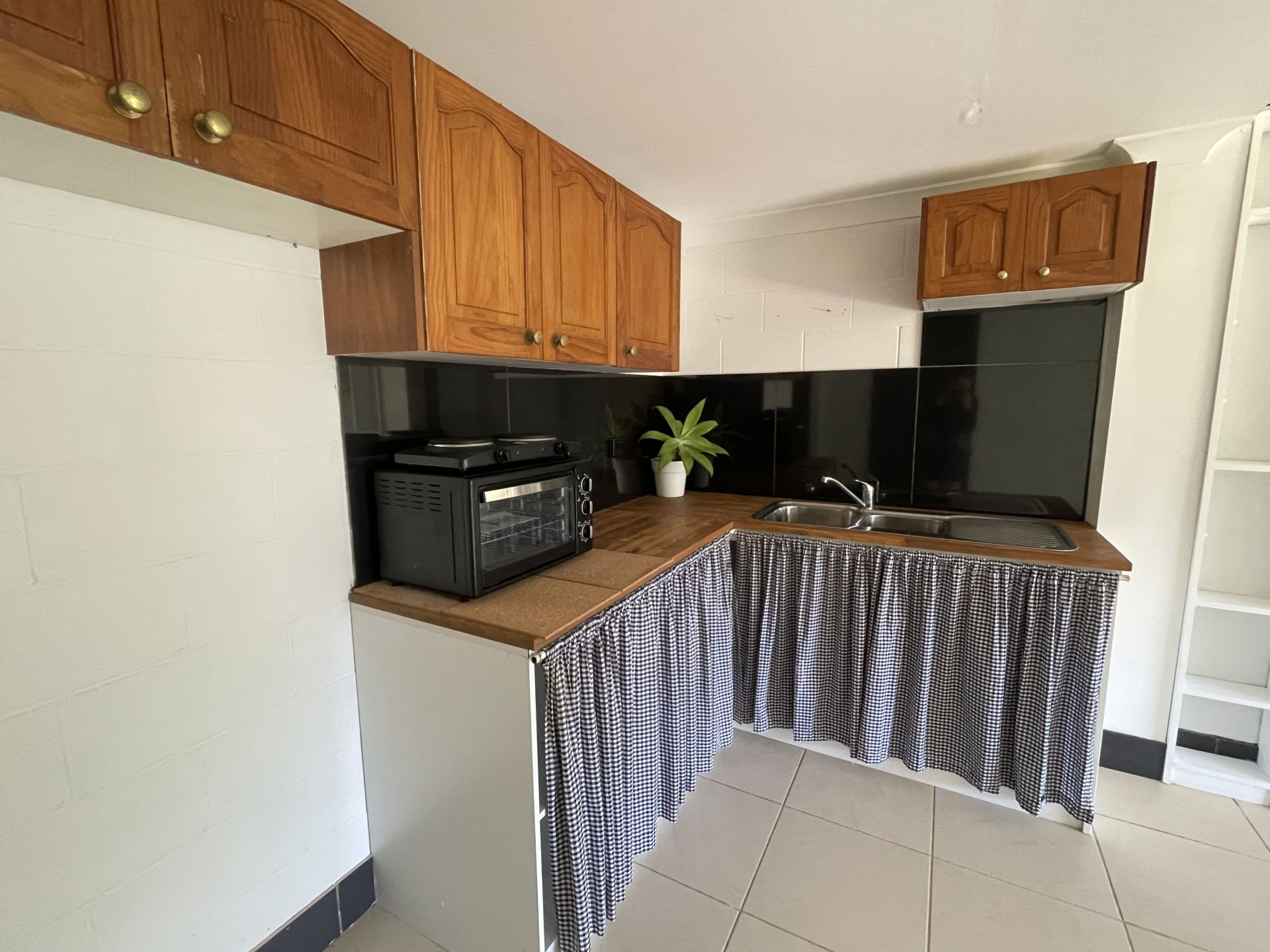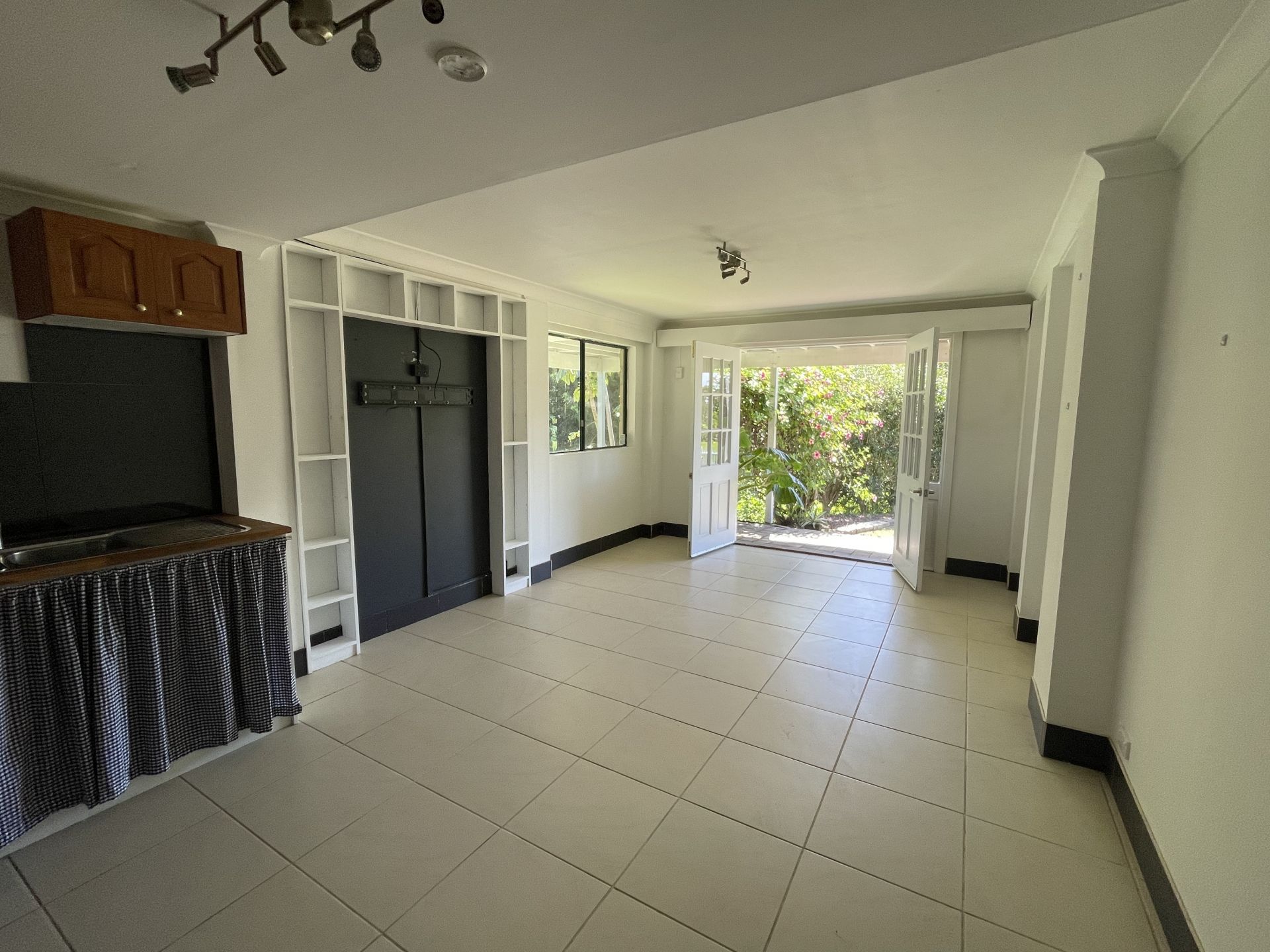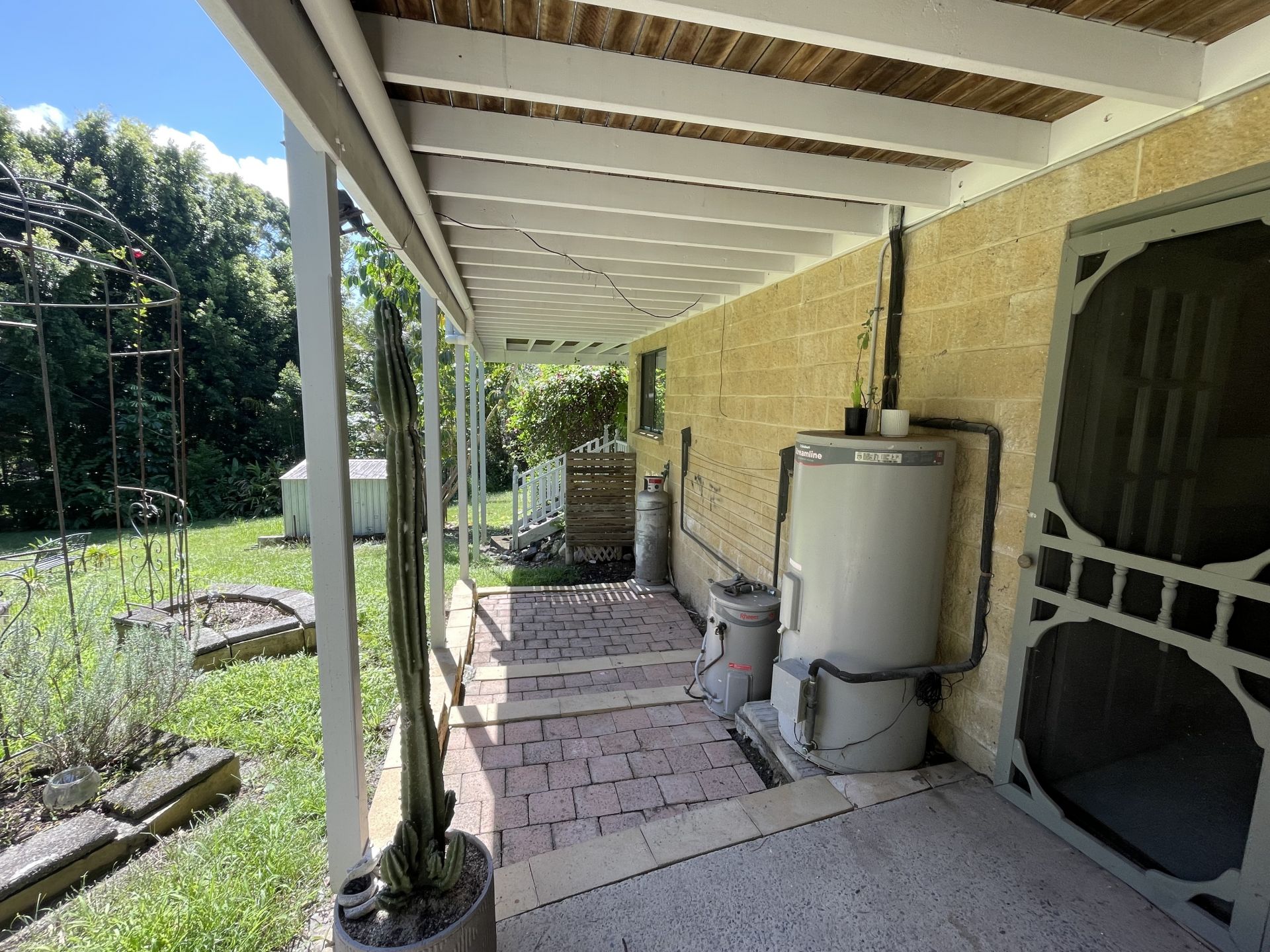 This Open plan studio with kitchenette & combined bathroom/laundry is situated beneath the main house. Carport. Small front porch.