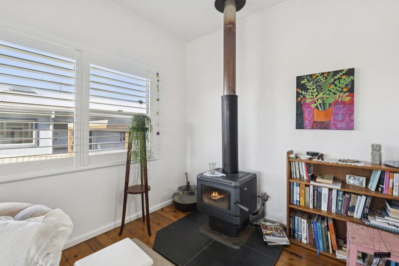 Stepping inside, you'll immediately be struck by the home's sense of character, with polished Cypress flooring underfoot, soaring high ceilings, and a cozy wood fireplace setting the tone for relaxed living. Whether you're curling up on a cool winter evening or enjoying the breeze from your reverse-cycle air conditioner on warmer days, this home offers year-round comfort in every season.