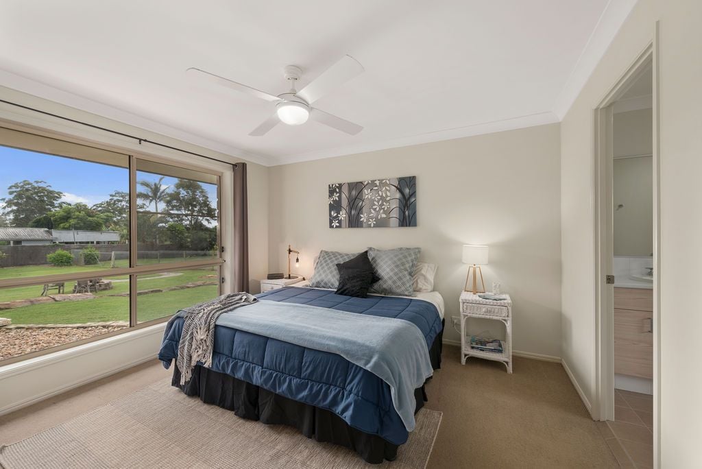Entering the home you are instantly greeted and drawn to the heart of the home. Elegantly designed with an open plan family, dining & kitchen area which flow onto the entertaining deck to take in the peaceful rural landscape. The home offers 4 spacious bedrooms - Master bedroom with walk in robe & ensuite, separate lounge room, study nook, tiled bathroom, remote double lock up garage with internal access, solar hot water & back to grid.