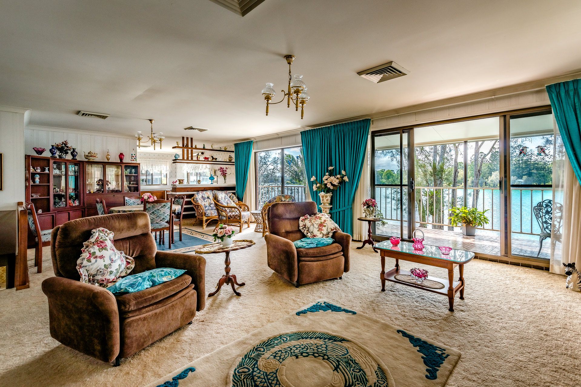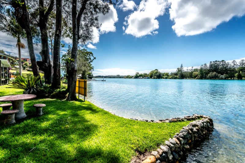 One of the most exclusive sites in the region, this unique sandy beach frontage to the Kalang River is a prized location and rarely available. Beautifully presented, this huge family home provides the perfect foundation to improve and capitalise. Commanding stunning river views from its exclusive position, the home offers 2 bedrooms upstairs, master with large walk in robe & separate dresser room. There is a spacious tiled bathroom, modern kitchen and a large open plan living area which showcases breathtaking views and spills out on the rear covered balcony. Downstairs is ideal for the additional family or guest and consists of 3 bedrooms, tidy kitchen, open plan living, separate shower, separate w/c and laundry facilities. Extraordinary opportunity to live the waterfront dream, entertain friends by the water's edge or by the lovely in-ground pool & terrace which overlooks the river. Buyers with boating interests will be impressed with the marine facilities on offer which includes a private boat shed, workshop and boat ramp. Here you can fish from your backyard, catch crabs, launch your boat, go water skiing or navigate on over 40km of waterways. It's all available from this rare site, what do you think you will pay for this location in a few years? To truly appreciate all that it offers an inspection is a must.