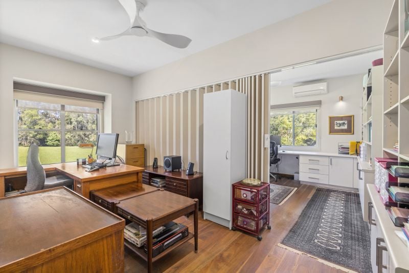 For those with Air BNB aspirations or to accommodate the extended family there is a delightful studio, complete with private entrance. Beautifully constructed to include wide timber floorboards, air conditioning, spacious tiled ensuite, built in cabinetry & kitchenette.