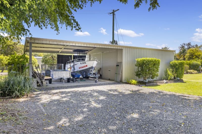 Outside the near level parcel of land is where the playground begins with a private slipway to launch your boat to access over 40km of pristine waterways. There is ample room to install a pool, if desired. For extra storage or the handyman there is an impressive double colour bond shed and double carport with 3 phase power.