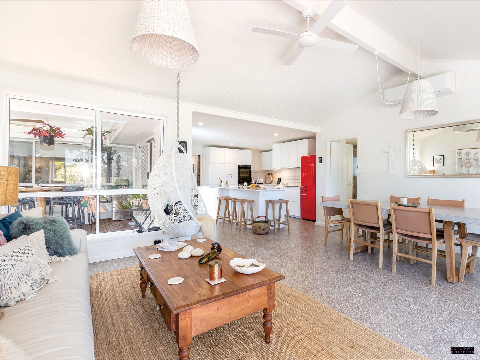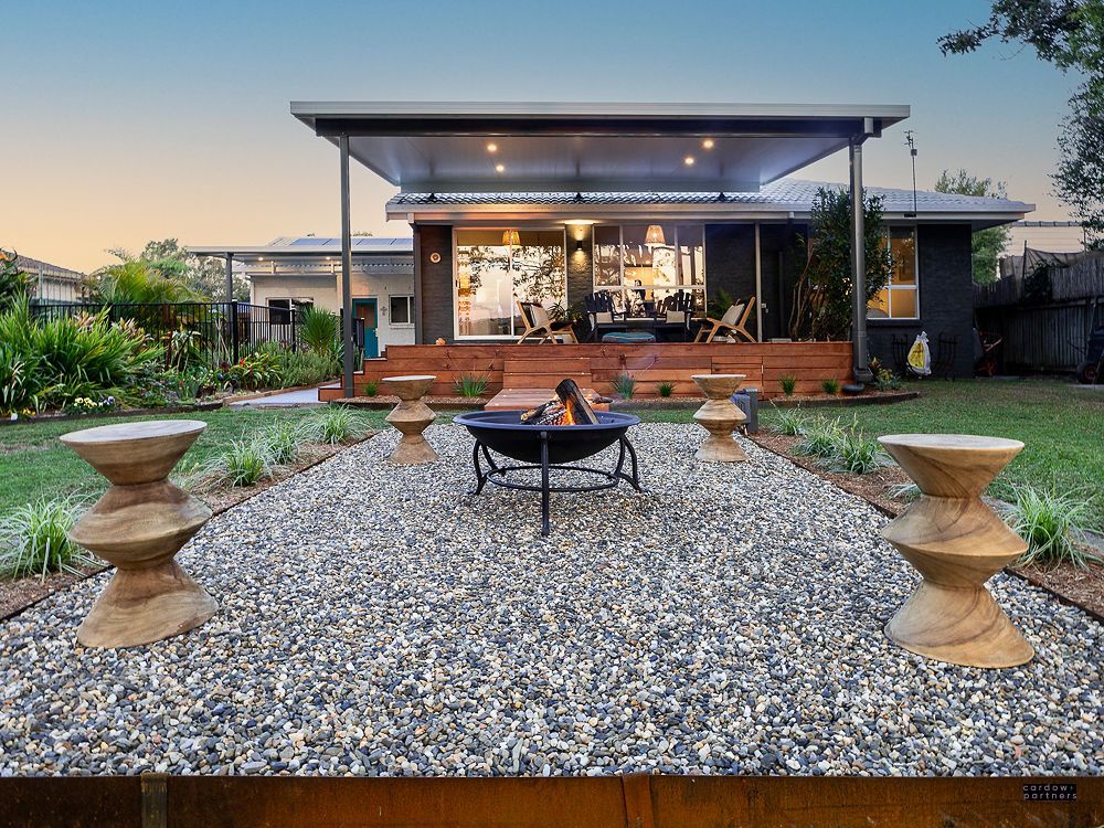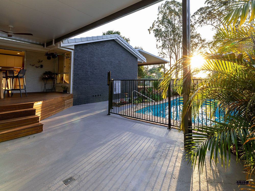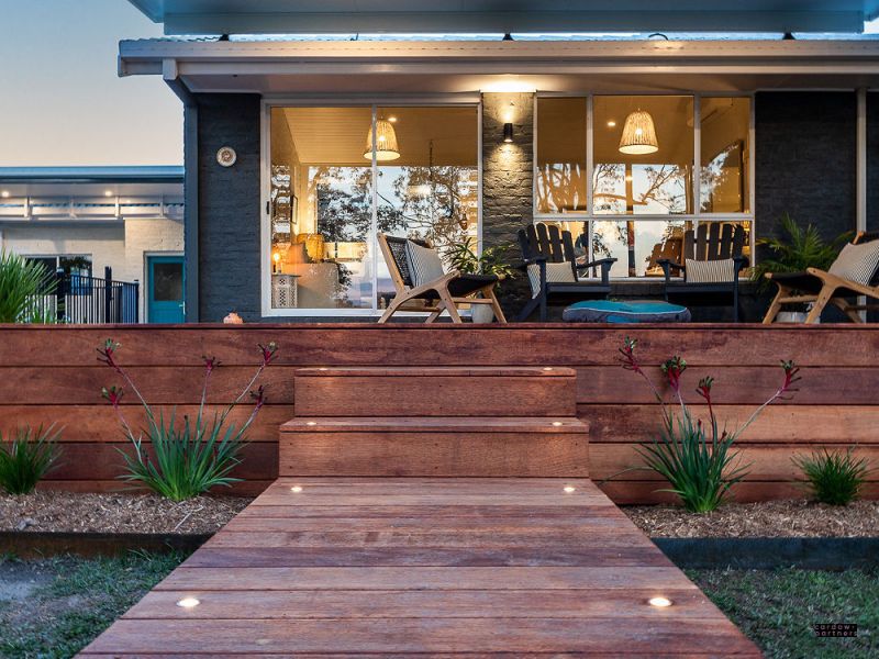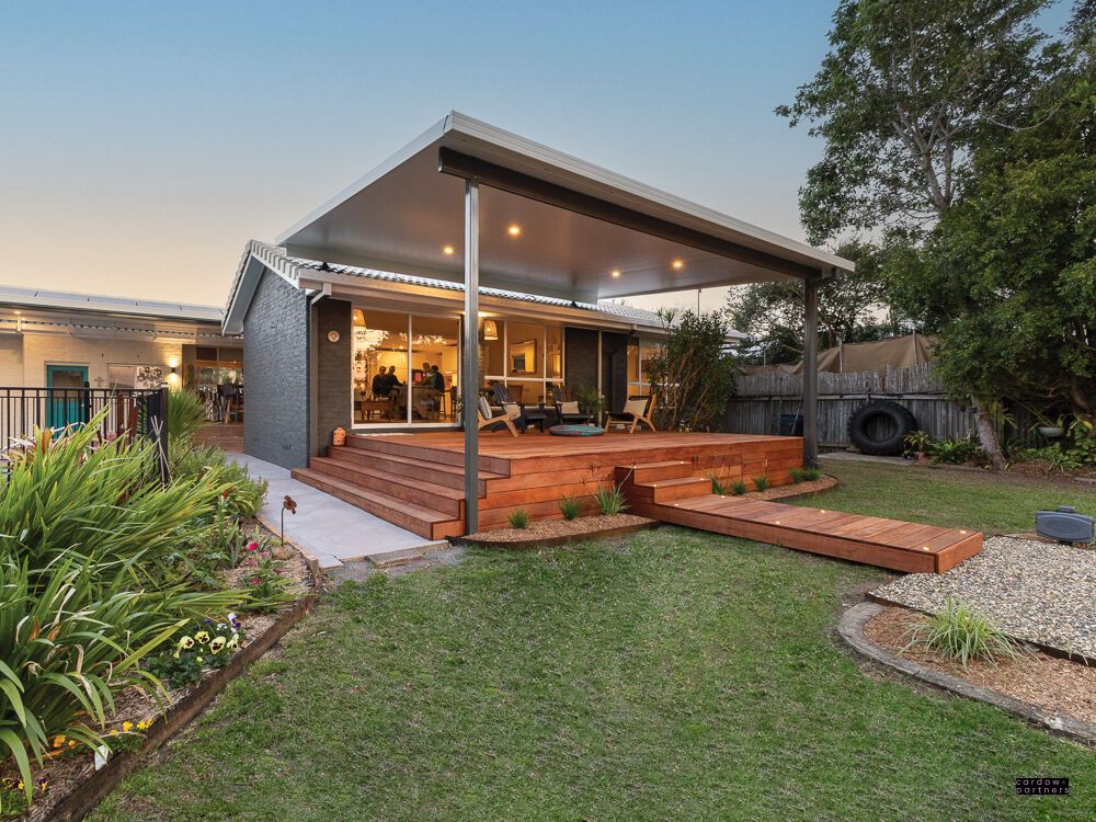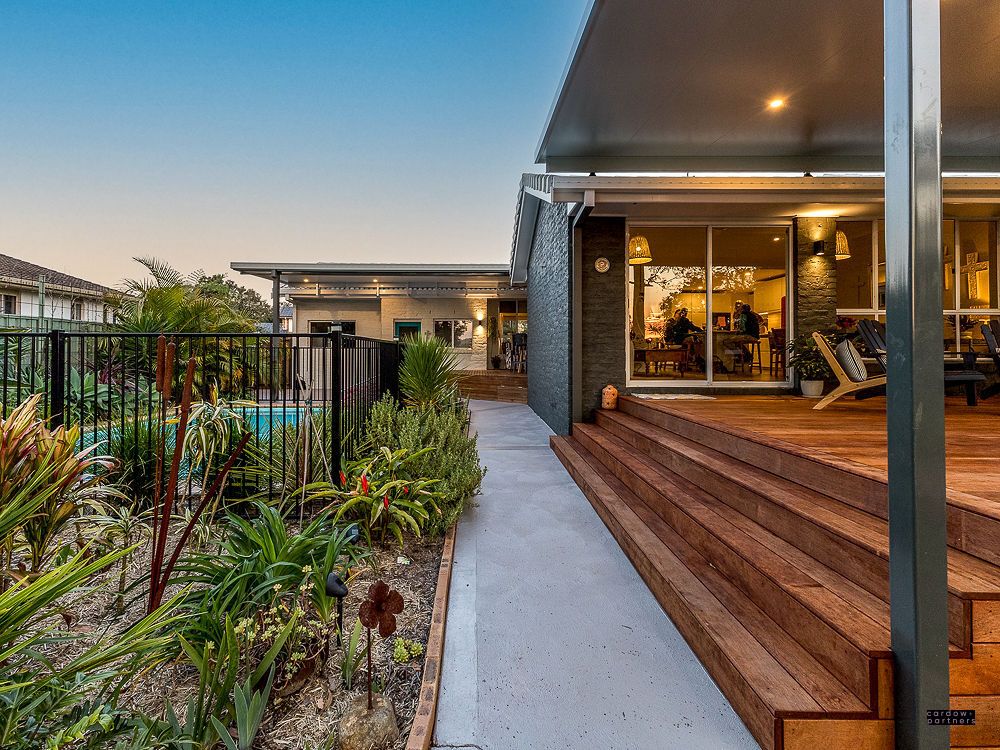 •Outdoor entertainer's dream – Merbau timber deck with insulated ceiling panels and timber walkway