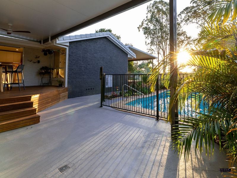 Air Conditioning • Built-ins • Deck • Dishwasher • Entertainment Area • Garden Shed • Living Area • Solar Panels • Swimming/Lap Pool •