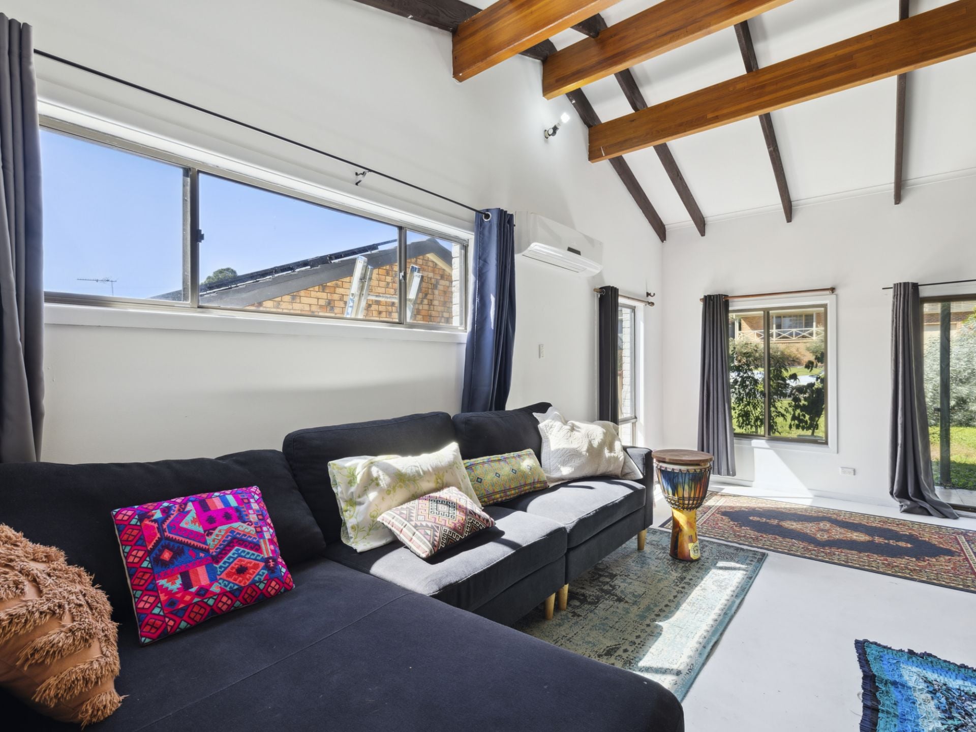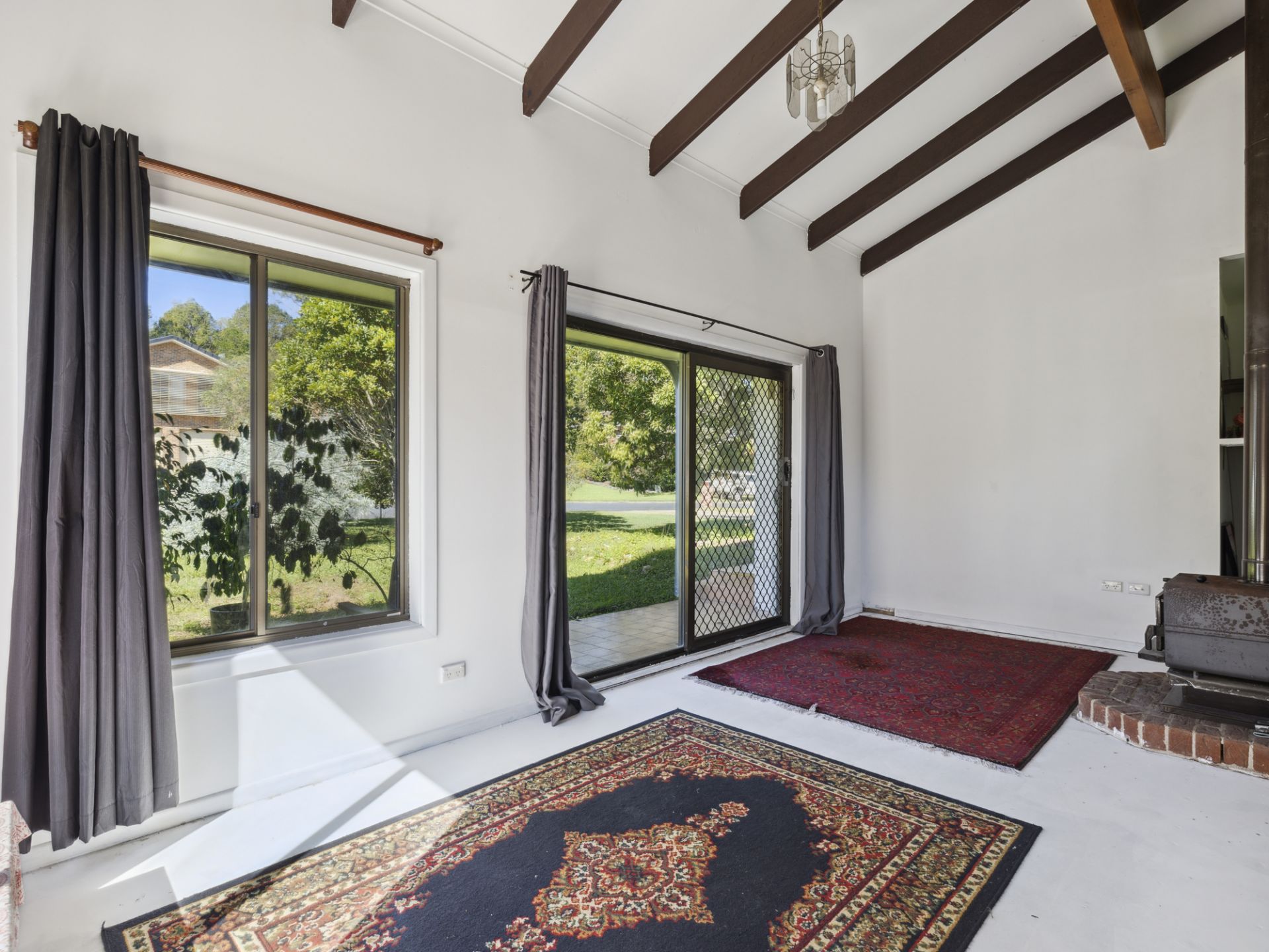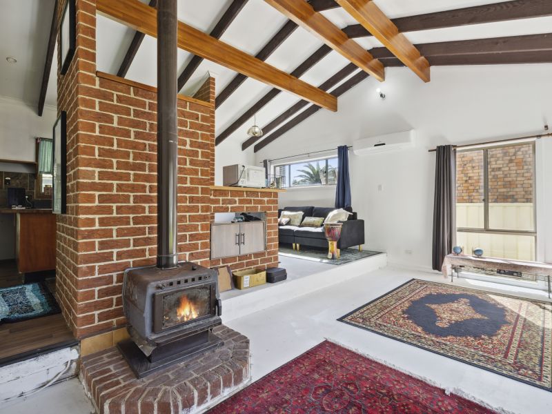 The lounge & dining area features all the comforts including reverse cycle air conditioning, glorious high raked cathedral ceilings and cozy wood fireplace to create an inviting atmosphere.