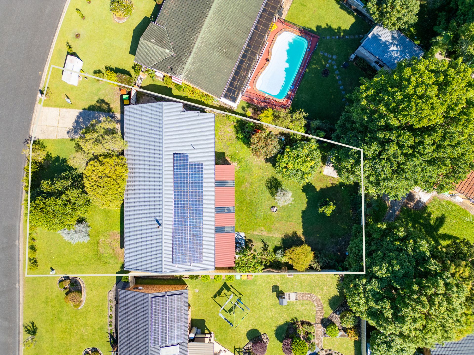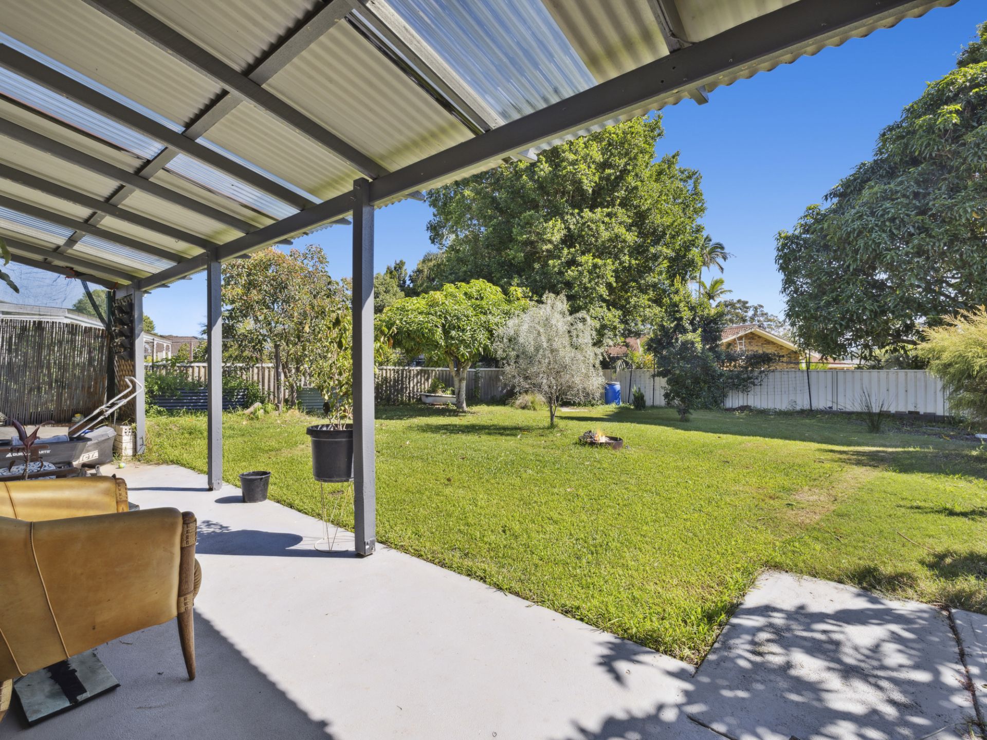 Outside, the backyard is an oasis for the children to play across the 713.9 sqm block. There is a covered entertaining area, solar back to grid (23 panel system), established fruit trees, all within a fully fenced yard.