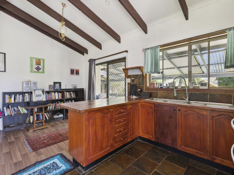 The timber kitchen is where the family will gather and offers ample space for meal preparation and entertaining guests.