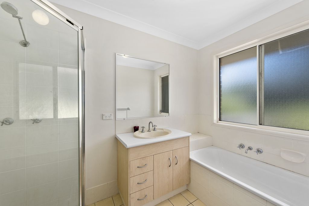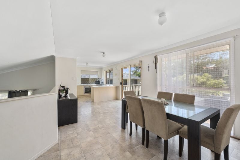 Elevated, split level, brick & tile 3 bedroom family home positioned on a gentle sloping 819sqm allotment. Inside features separate sunken lounge room, functional kitchen & dining room, good sized bedrooms with built ins & the Main featuring walk in robe to ensuite. The rear entertaining deck off the dining room opens to the spacious fully fenced yard with a covered patio at the front with hinterland views.