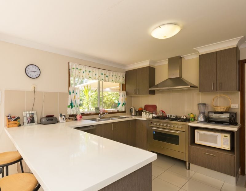 There are no neighbours behind or beside this home, just a grassy nature reserve down to picturesque Woolgoolga creek.