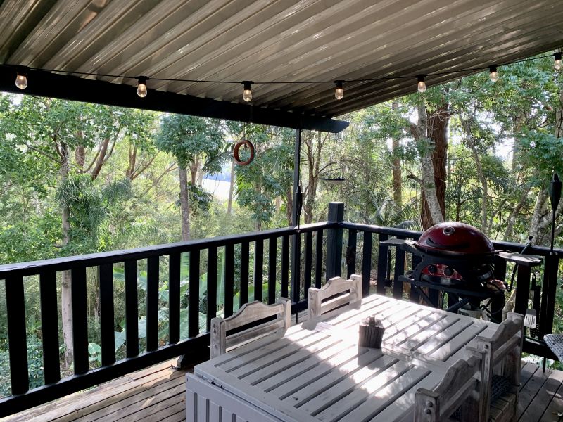 But it's not just the interior that makes this oasis special. Step outside, and you'll find a tranquil haven surrounded by lush greenery and serenity. Whether you want to sip your morning coffee or have a barbecue on the back deck, this property offers the perfect setting for outdoor living.