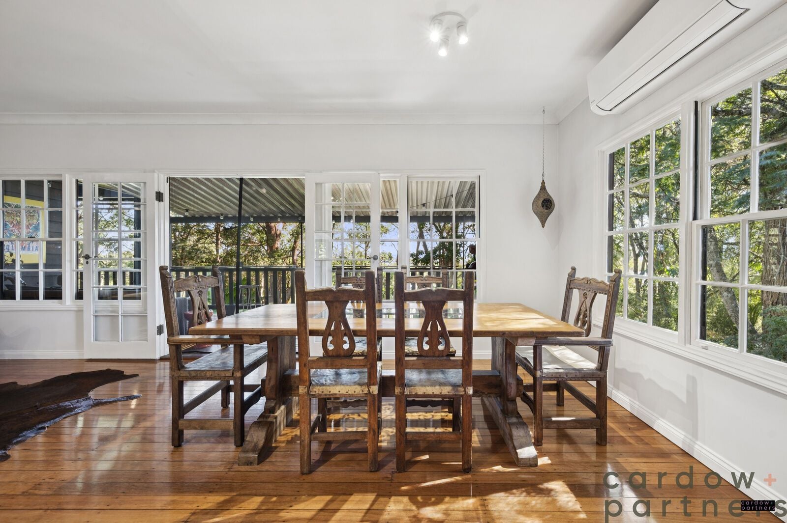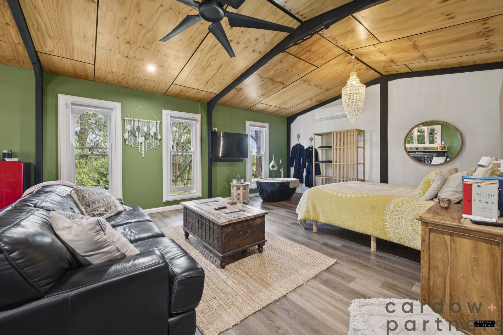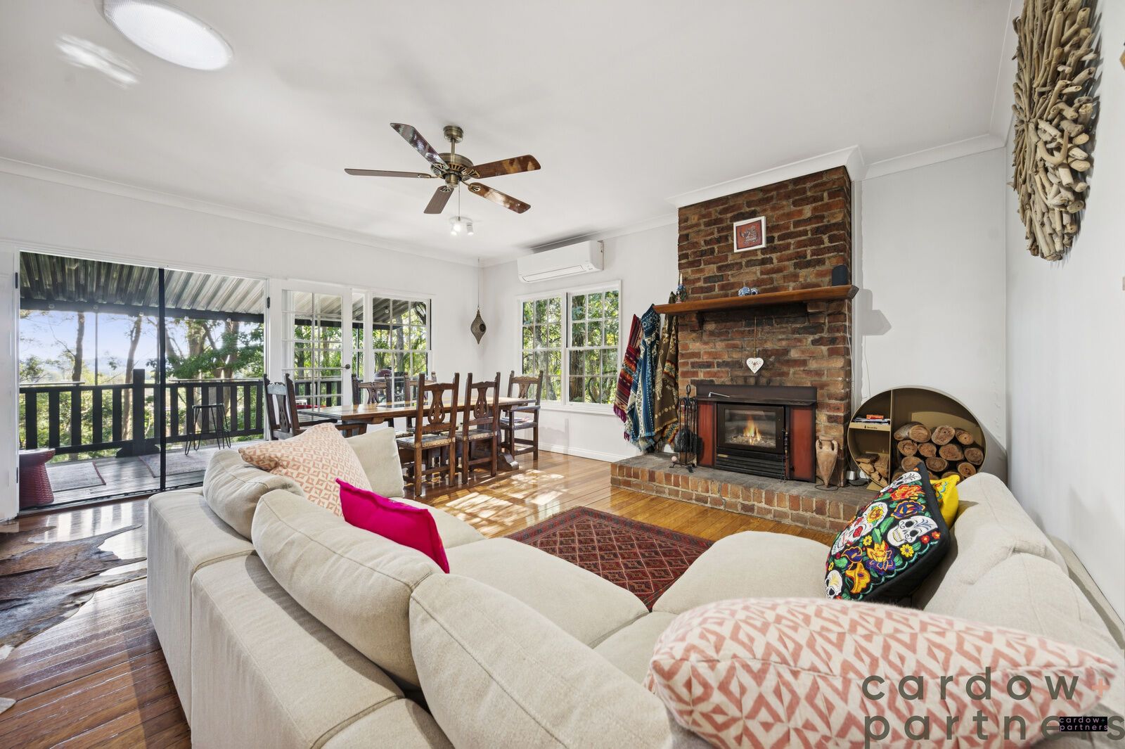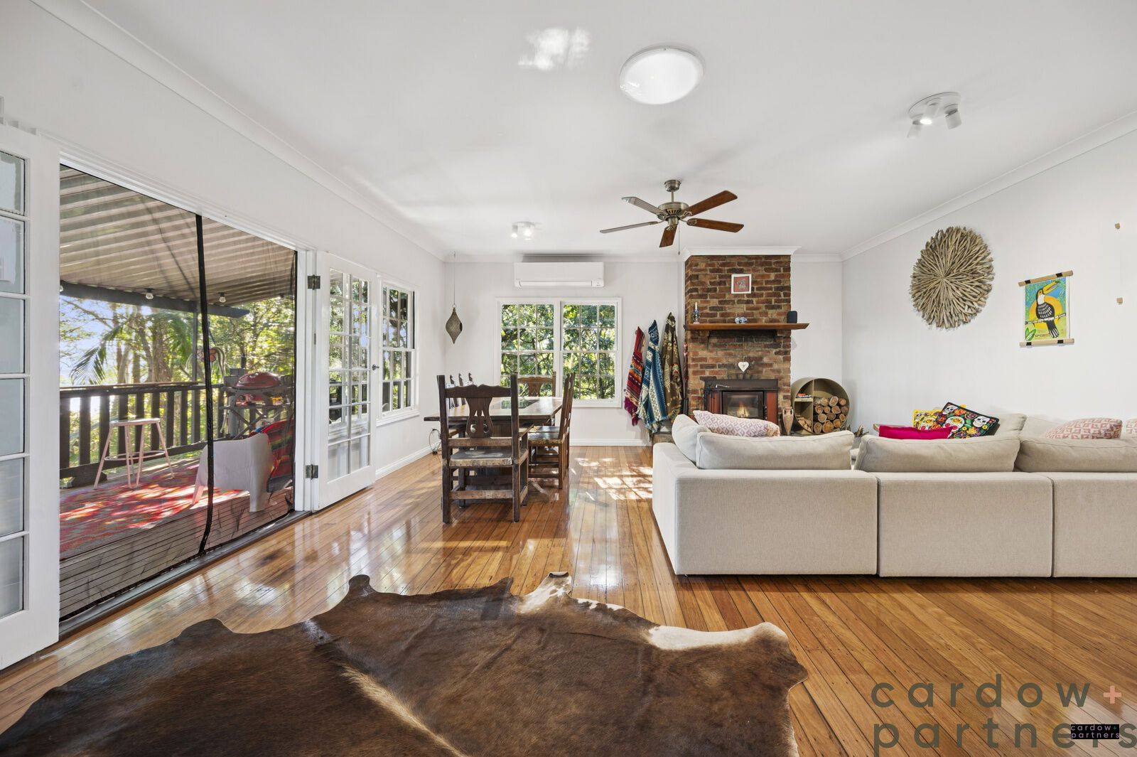 At the heart of the home, a sun-drenched French Oak kitchen welcomes the morning light and flows effortlessly into a spacious open-plan lounge and dining area. Enjoy polished timber floors, high ceilings, air conditioning and a cozy wood fireplace — ideal for cool winter nights.