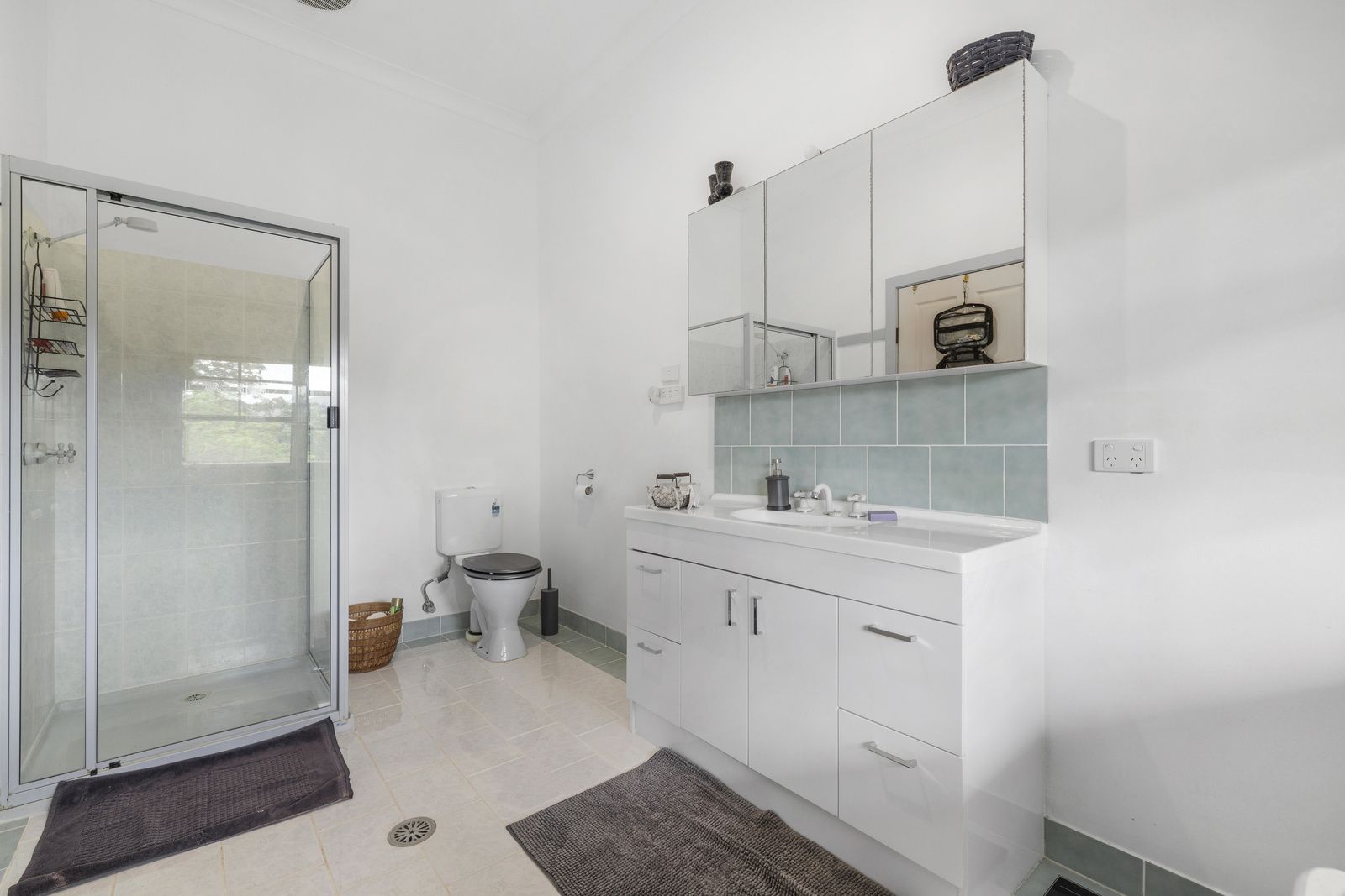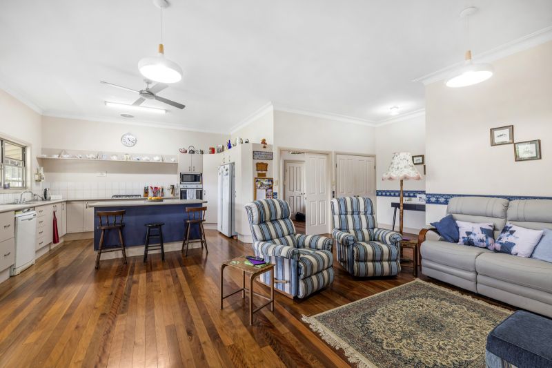 The centrally set open plan lounge, dining & kitchen area includes a built-in pantry, plenty of storage and modern cooking appliances. The covered rear verandah extends entertaining opportunities to outdoors and overlooks to lush acres onto the freshwater creek.