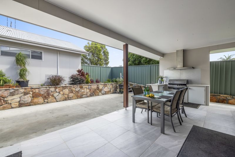 Cardow & Partners Property exclusively offer this near new 4-bedroom home located less than 500 mtrs from the beach in Corindi. Features of this comfortable home include, gas hot water, ceilings fans, air con and a three-way bathroom. There is an ensuite to the master bedroom, and a more formal living room at the front of the house. The hub of this home with its stylish kitchen, dining and living area opens out onto a private courtyard with a covered alfresco dining space, and outdoor kitchen. There's also a generous size multipurpose room off the kitchen/part butler's pantry with built-in desk, front load washer, loads of cupboards and a sink with a side door out to the clothesline.