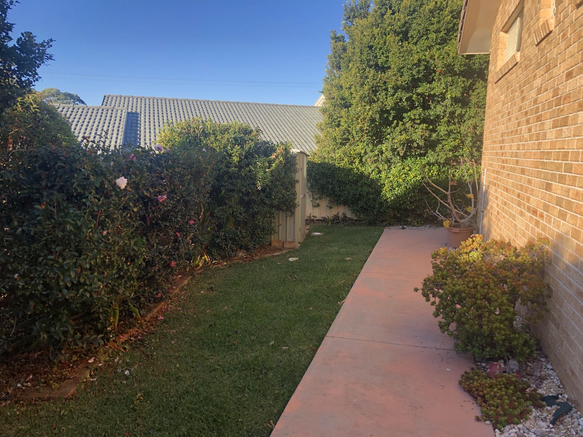 Carport, garden shed. Easy to maintain garden & lawns!.