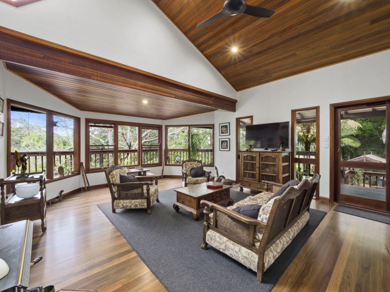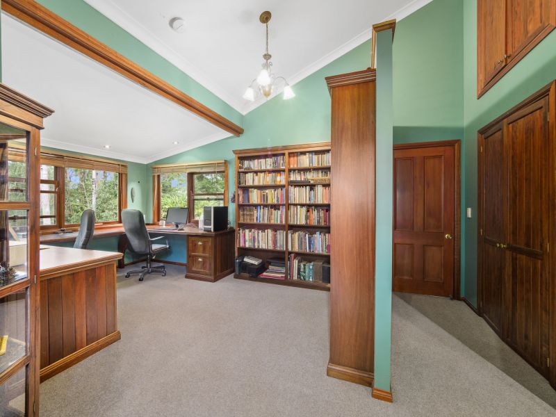 Positioned on approximately 13 manicured acres of land, commanding a premium elevated site, this meticulously designed home and surrounds needs to be seen to be believed. Boasting warm polished hardwood floors, soaring timber cathedral ceilings, quality cedar windows, slow combustion heating, air con and multiple living areas. The attention to detail is remarkable. The home features 3 bedrooms, all with built in robes, main with a large walk in robe and ensuite, professional office/study with custom built book shelves, contemporary bathroom, generous laundry and kids retreat.