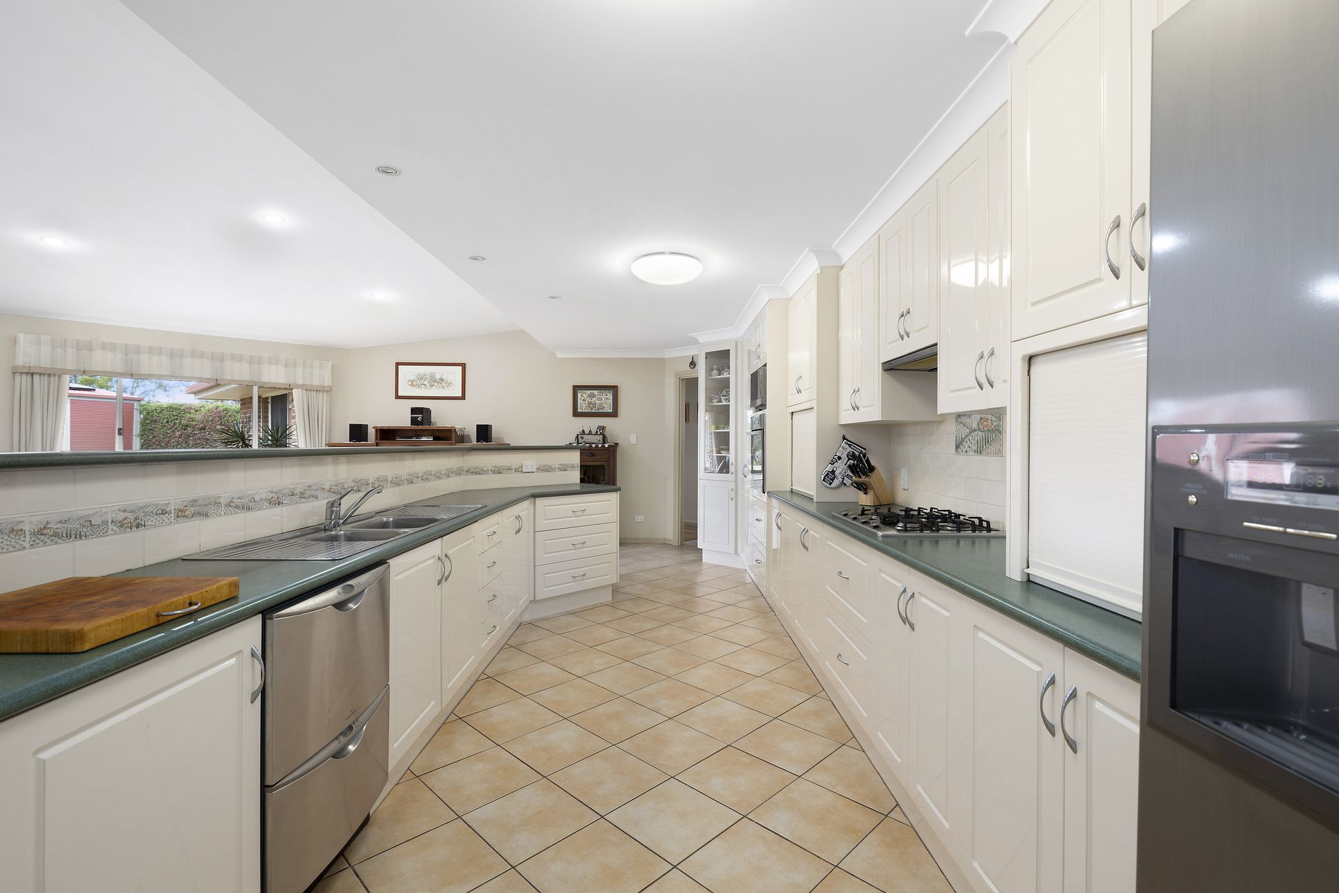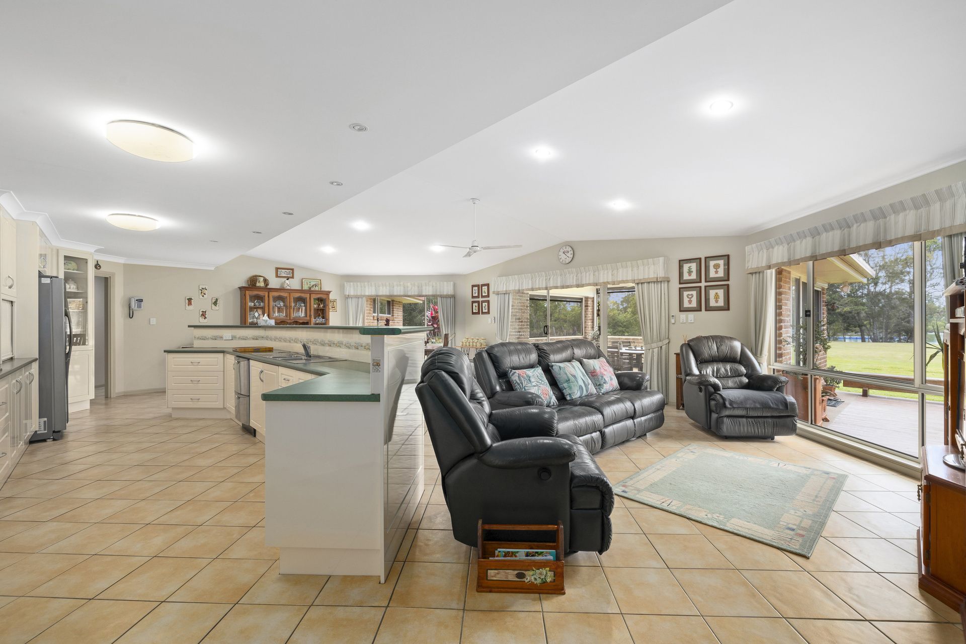 As you enter the main open plan living area, you will be welcomed with lovely high ceilings and a massive kitchen with gas cooktop and dishwasher. This room flows straight onto a screen entertaining area with an outdoor fire pit, ideal for entertaining family & guests.