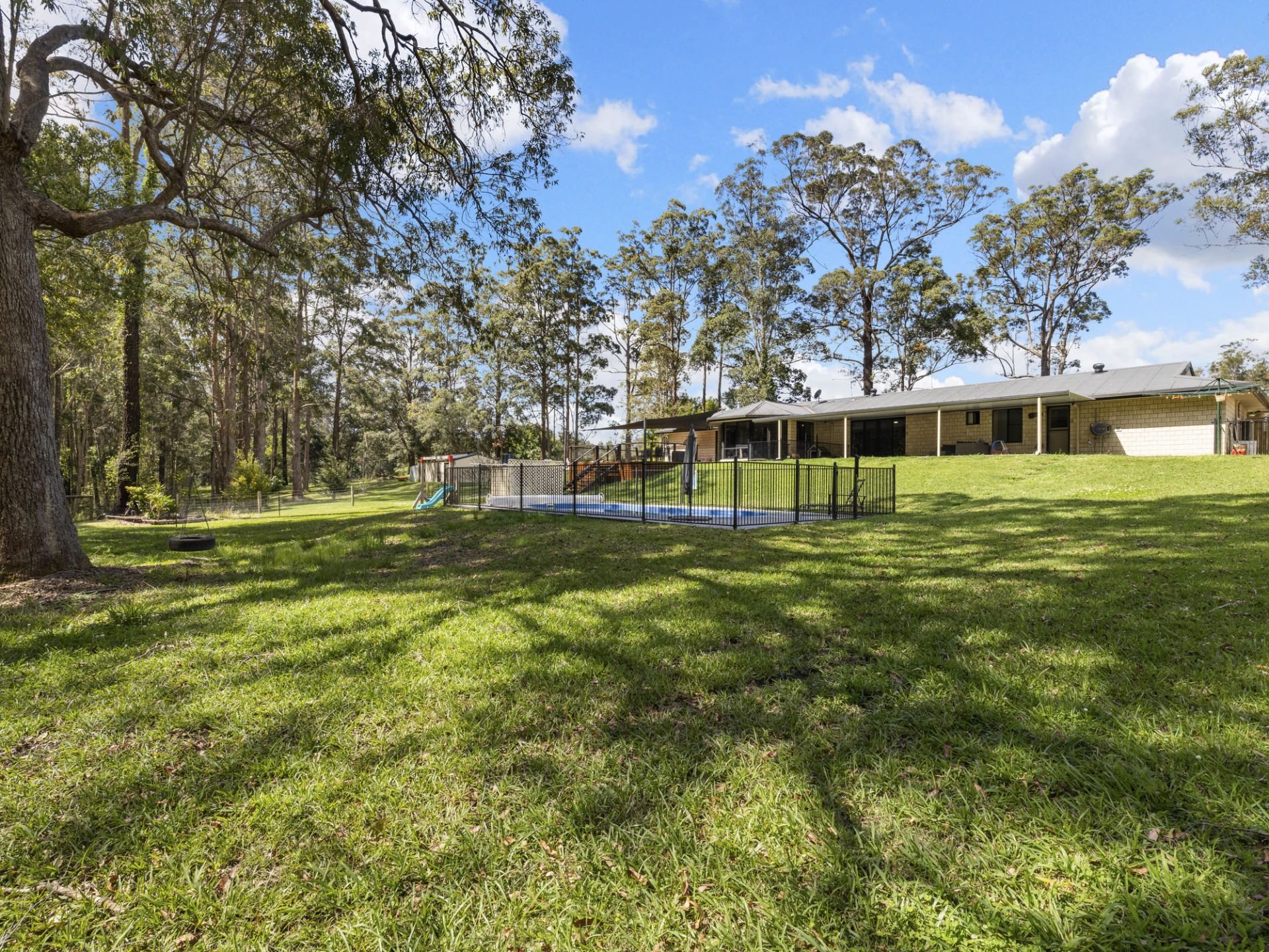 This expansive home on an idyllic 3.76ha (9.29 acres) has space for the whole family with room for animals and a substantial vegetable garden. Featuring four bedrooms, three with built-ins, and the fourth with WIW and ensuite, a bathroom, a formal lounge with a slow combustion wood heater, and a study nook. The open-plan dining with bay window, kitchen & family room has a seamless indoor/outdoor that flows perfectly with the covered alfresco entertaining areas and the inground saltwater pool creating a carefree lifestyle. The property also showcases ducted-air conditioning, window shutters, a double remote garage, 6.6Kw solar panels, a 10m x 5m shed, new machinery shed 10m x 15m, allowing room for a workshop or more car space. Urunga shopping Village, picturesque surf beaches rivers are only a short drive away or take a country drive up the mountain to World Heritage National Park.