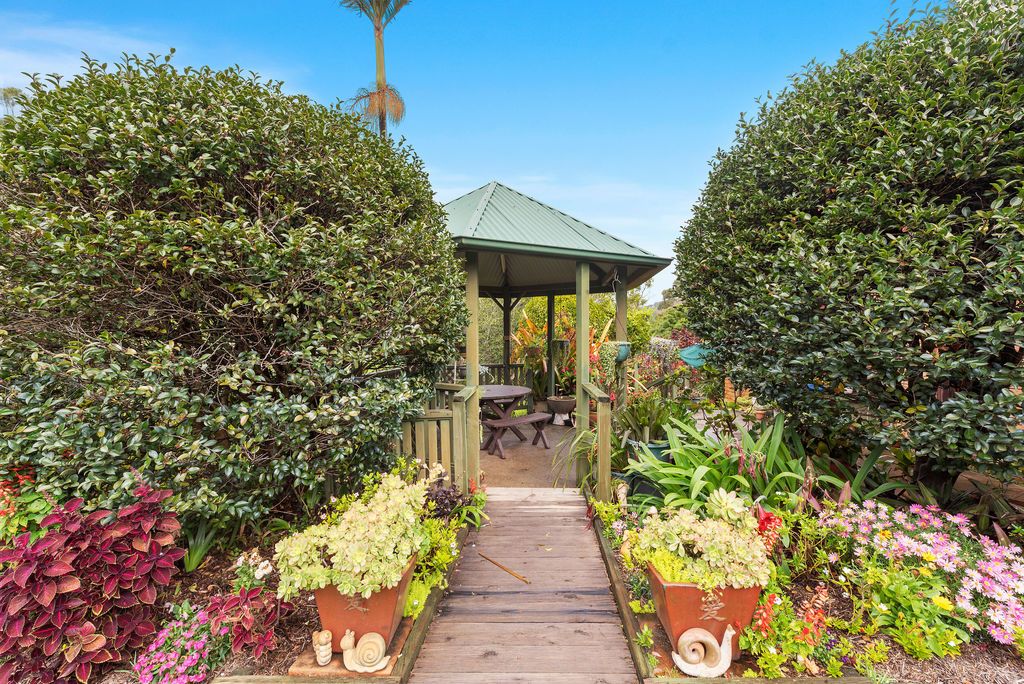 You don't come across a house like this very often, immaculately presented in the elevated position of Haviland street in Woolgoolga. Award winning gardens spread across the rear of the property have a sprinkler system installed throughout that are all irrigated with bore and tank water. The stunning gardens have cement paths running throughout with 2 garden sheds and a gazebo which completes this gardener's delight. Three 22,000L rainwater tanks and a dam can also be found on this acre block. Don't let the size of the gardens fool you, they are well-established and extremely low maintenance.