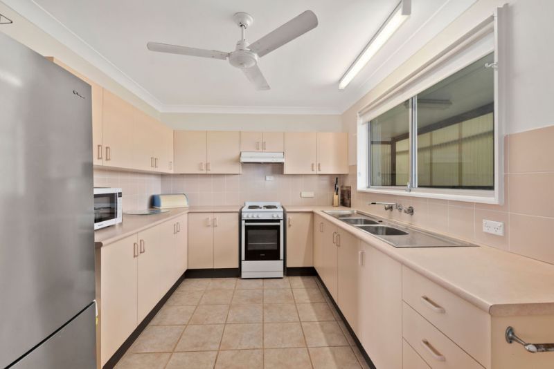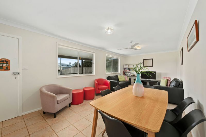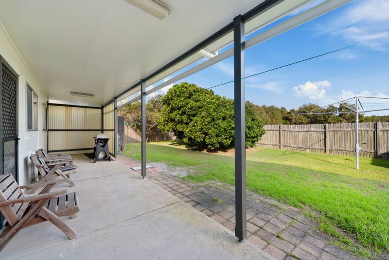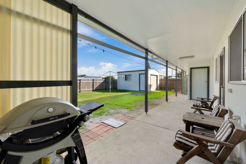 There are two bathrooms, one with a separate toilet, plus a full-sized kitchen, front and back covered outdoor areas and TV in the living/dining area and in the third bedroom.
