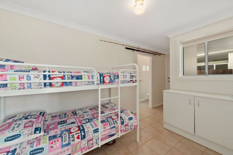 The property features 3 bedrooms with queen bed, two singles and two set of bunk beds, and fourth area for the kids with a further set of bunk beds. With plenty of space to sleep the kids, you can be sure entertainment for them hasnt been missed with board games and a DVD player.