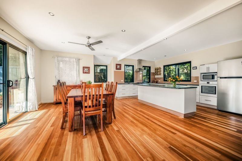 Occupying a prime elevated block with a sun-soaked northerly aspect, this architect-designed home is quality built with quality inclusions. Presented in excellent condition, the home features high ceilings, blackbutt timber floors, air conditioning, and a stunning kitchen with a gas cooktop. There are three bedrooms, two bathrooms and a single carport. The home enjoys plenty of light and is airy, with skylights, louvre windows and French doors. The 700m2 block is level, and there is plenty of room for a caravan or a trailer. Energy-efficient features include 1.5kw solar, 5,000L rainwater tank and solar hot water. Decks front and rear offer the perfect position to soak up the beautiful views, relax, or entertain amid superb landscaping and a private setting. Just 950m to the supermarket/bottle shop/takeaway food in North Bellingen, or walk across the Bellinger River 1.8km to the town centre, shops, cafes and schools.
