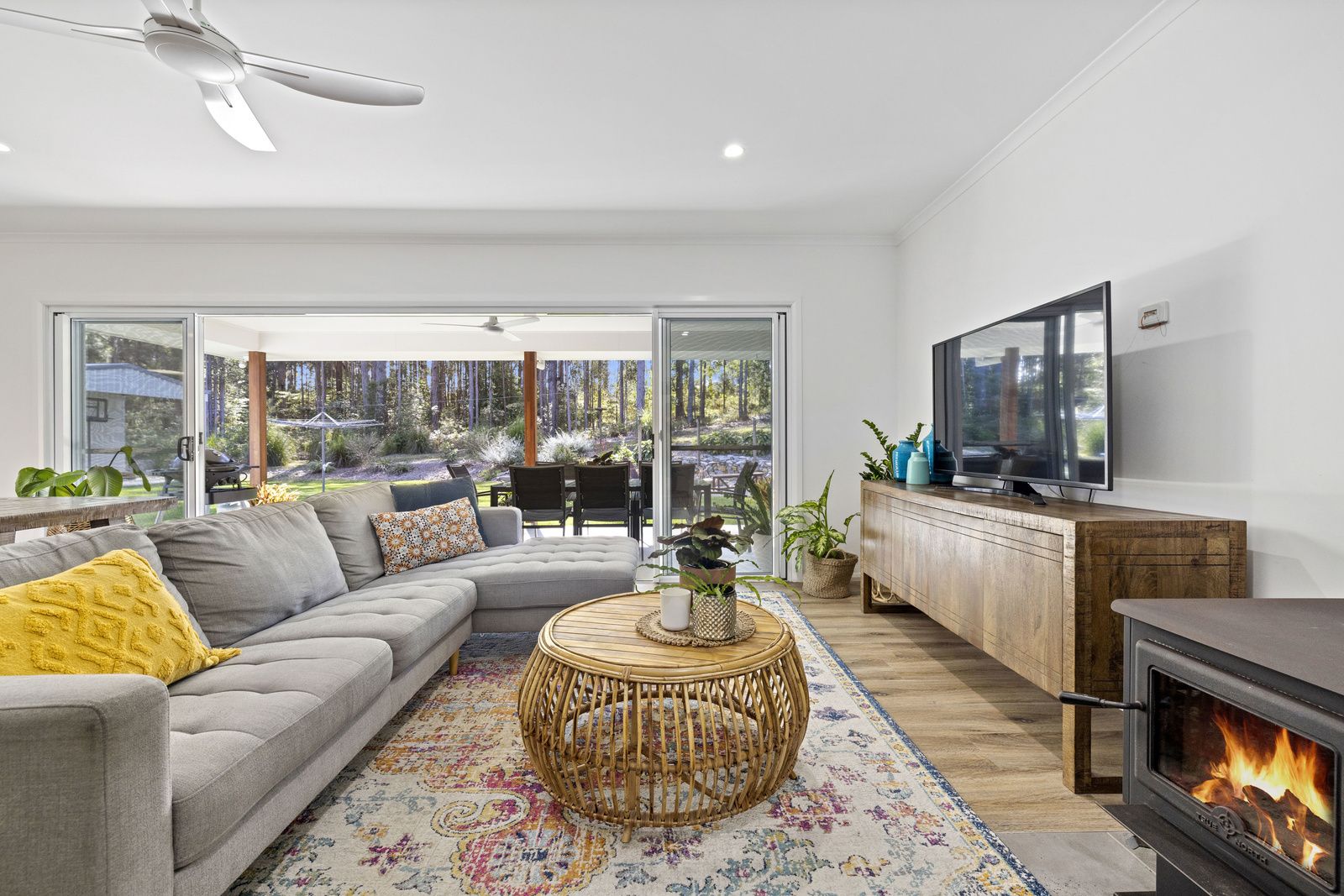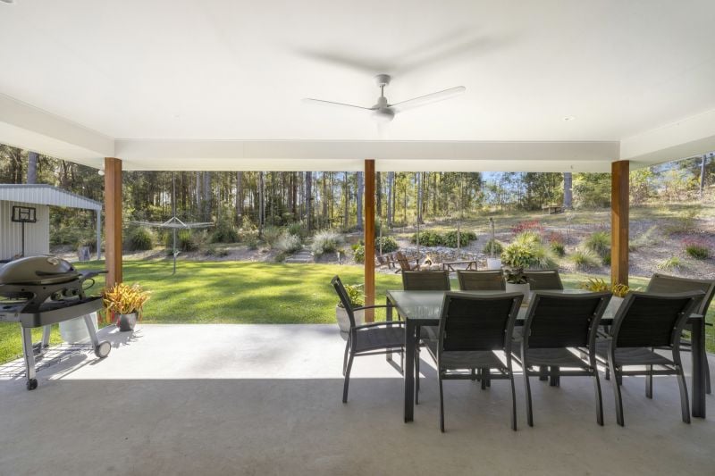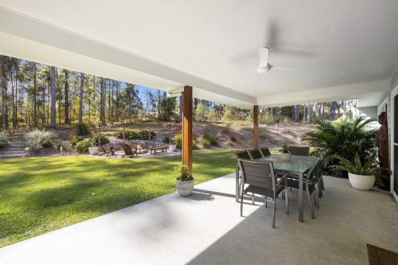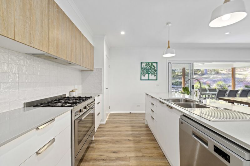 The outdoor area is enhanced by the landscaped gardens, fire pit, children's flying fox and a leafy bush backdrop with an abundance of flora & fauna, making it an idyllic setting to entertain family & friends all year round.