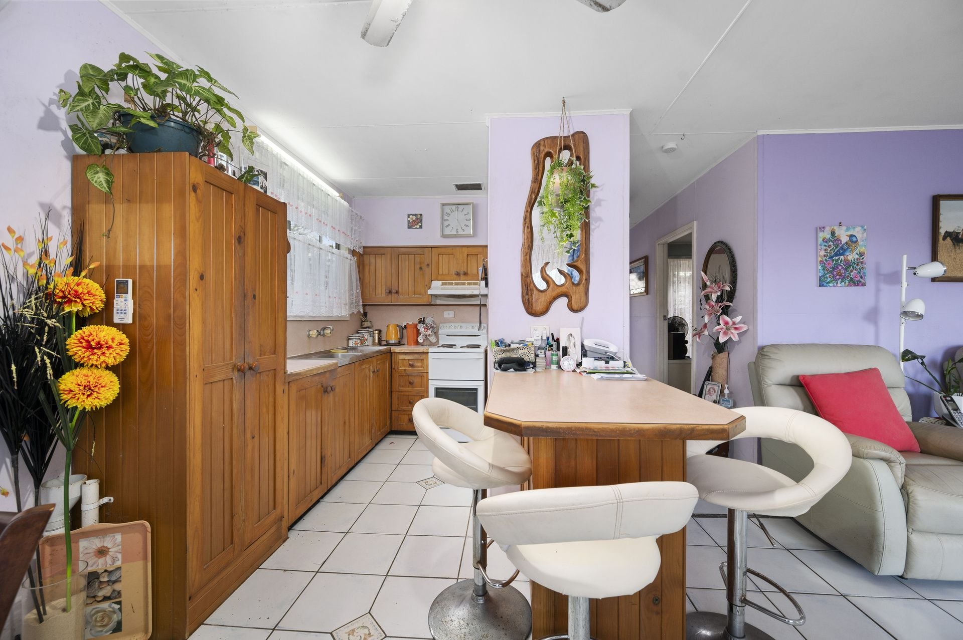 The original north facing home offers tile flooring throughout, air conditioning, open plan lounge, dining & kitchen area, 3 good size bedrooms and functional bathroom. There is a rear covered entertaining area overlooking the enchanting lawns & gardens.