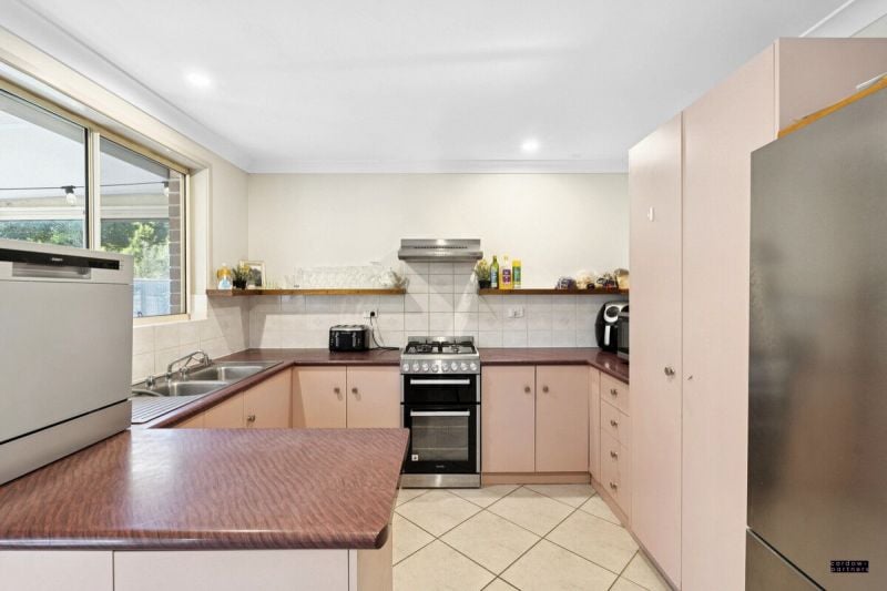 Step inside to discover a spacious, open-plan layout featuring a combined kitchen, dining, and living zone with reverse-cycle air conditioning and easy-care ceramic flooring. The original kitchen is in tidy condition and includes a gas cooktop, electric oven, and ample bench space, ready to use as is or update to your taste.