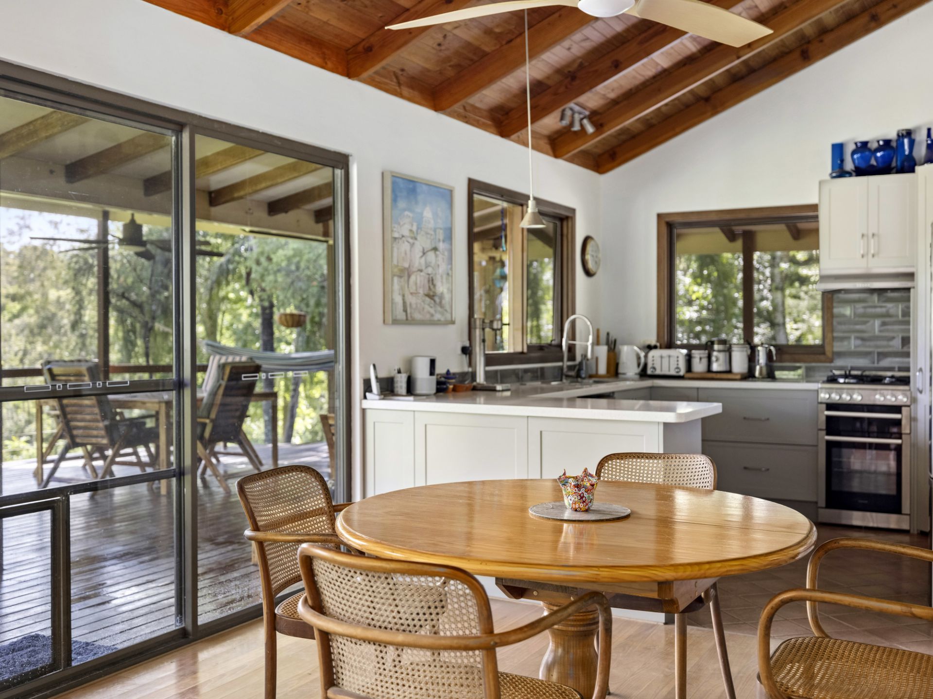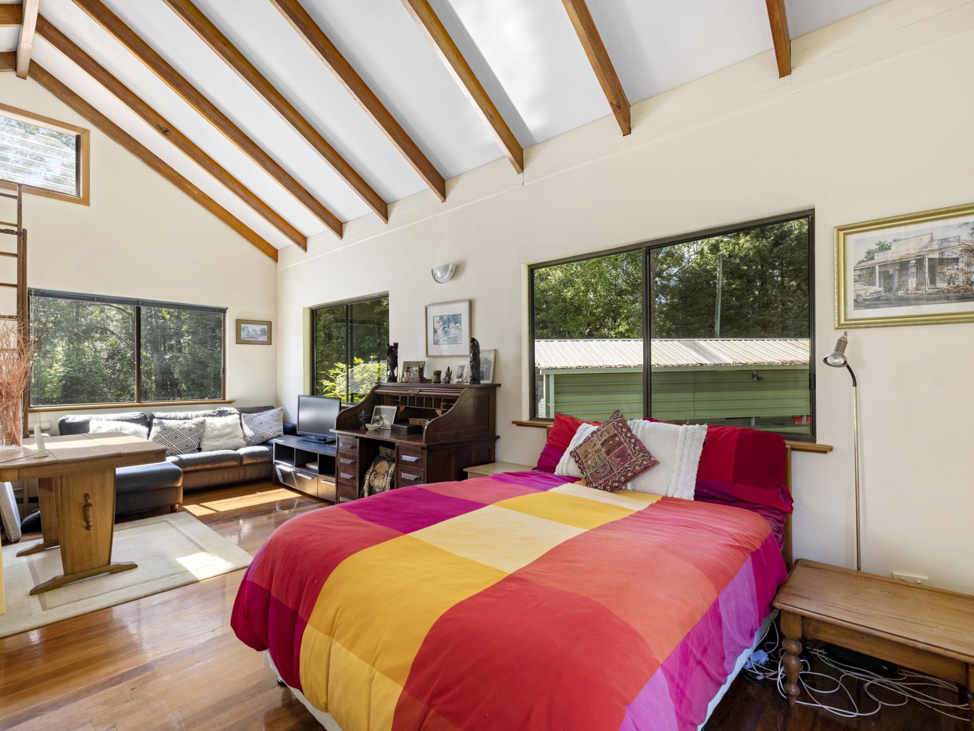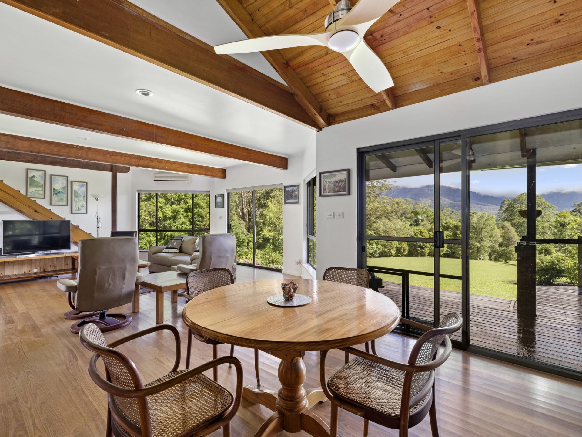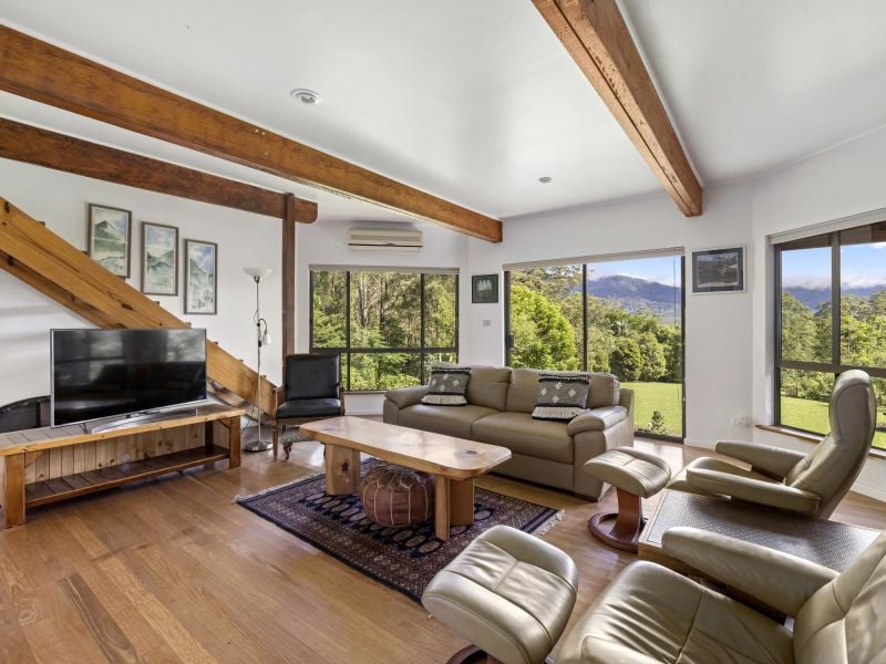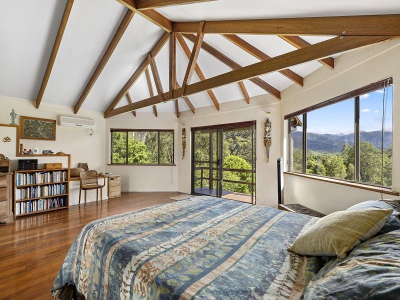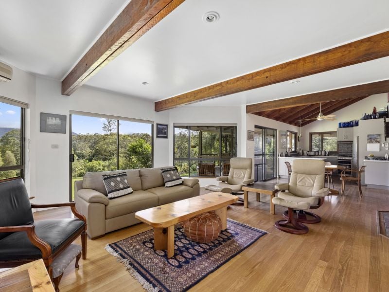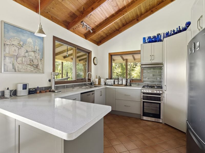 Nestled in a private sanctuary the property is graced with over 4.856 ha in a lush park-like setting. The two-story north-facing home offers an idyllic lifestyle and features a covered outdoor alfresco dining area that embraces the natural landscape. Move inside to the light and airy open plan living/dining and modern new kitchen that includes a slow combustion wood heater, warm timber floors, and air conditioner, plus three bedrooms and a bathroom.
