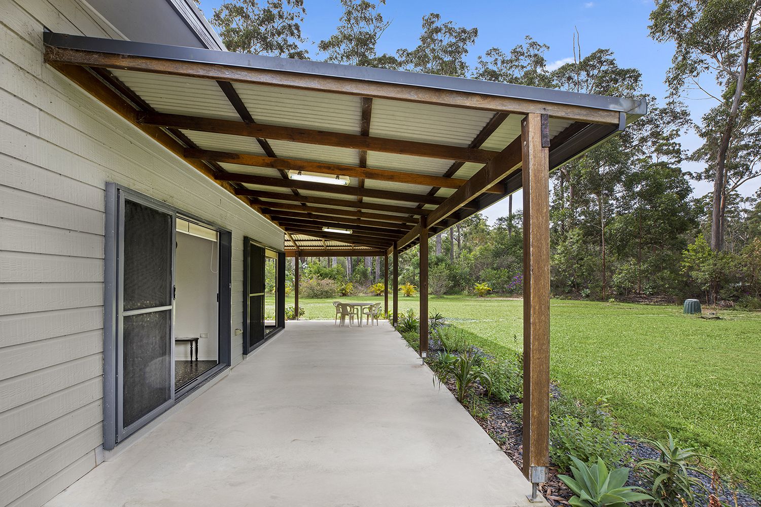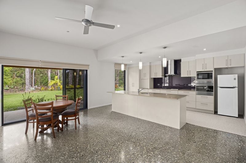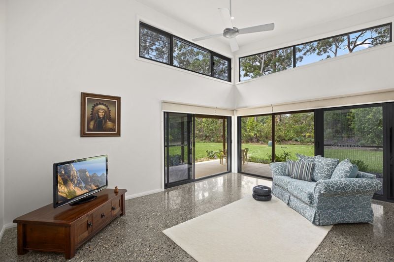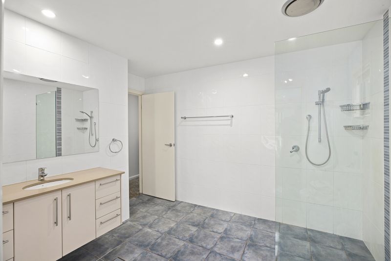 Well designed to take advantage of a sunny north facing aspect, there are lovely high ceilings in the living area and stacker sliding doors which open onto a wide covered entertaining area.