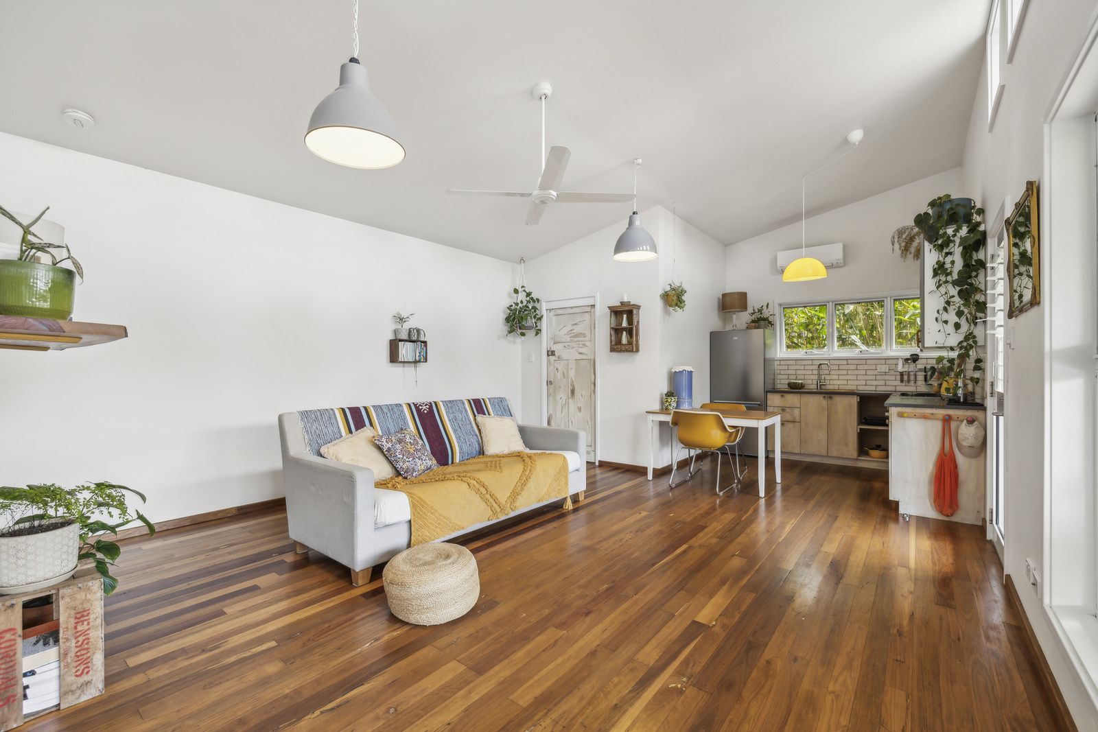 The main residence features beautiful hybrid floors, high ceilings in the lounge room, and plenty of windows for cross-flow ventilation and a welcoming atmosphere. The covered deck is perfect for enjoying your morning coffee while breathing in the fresh coastal air.
