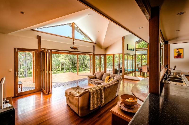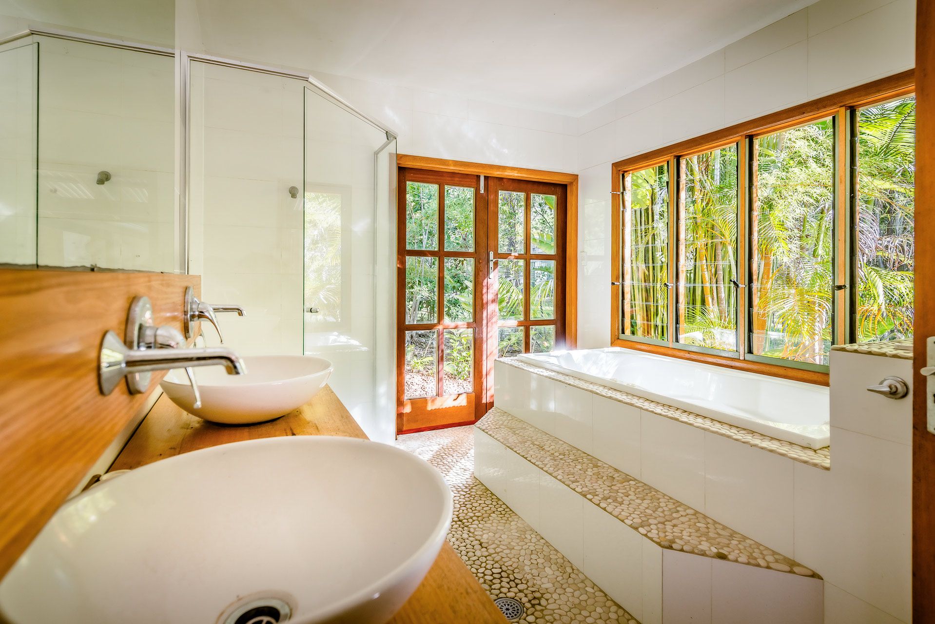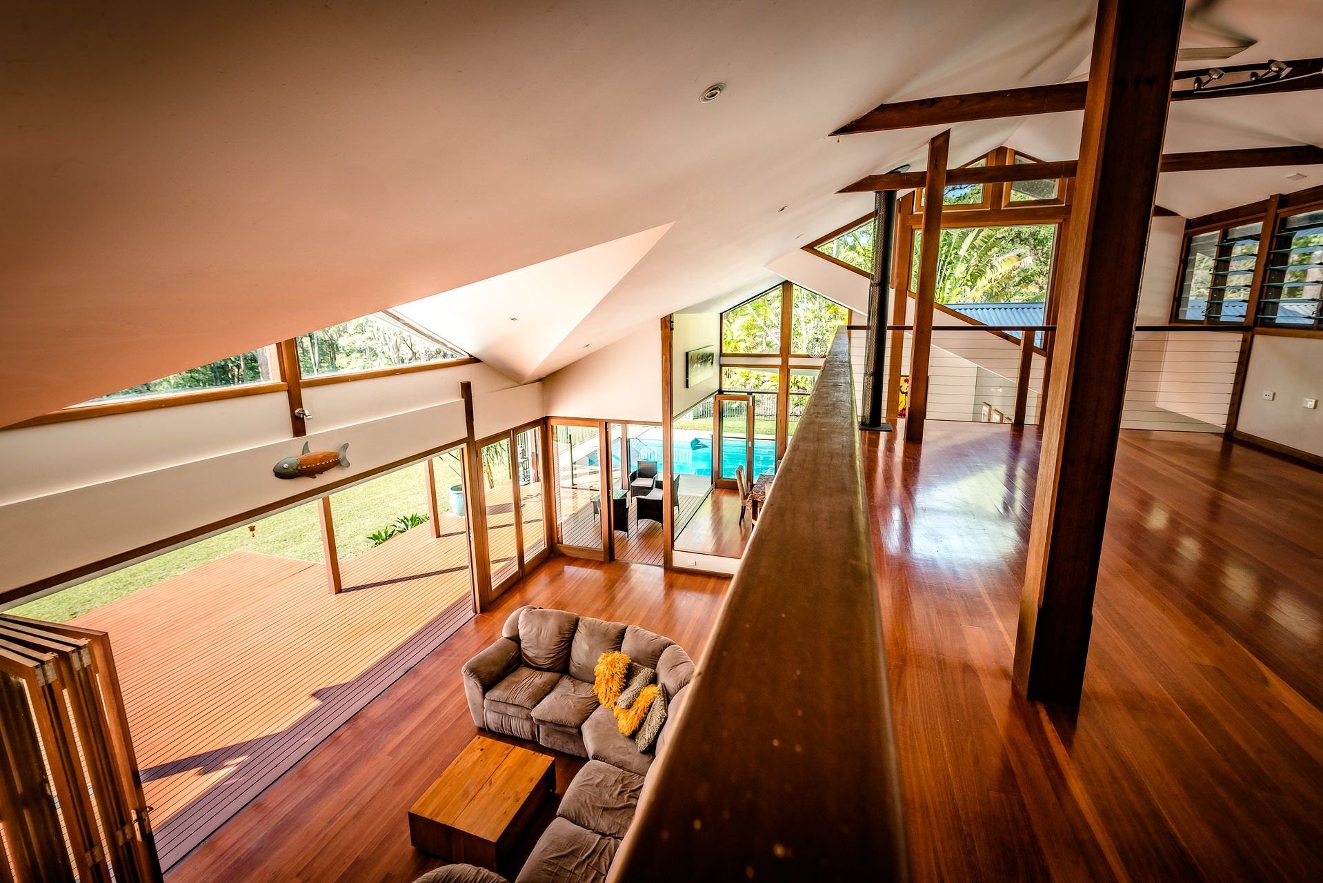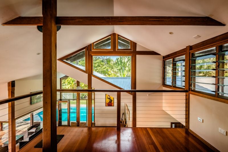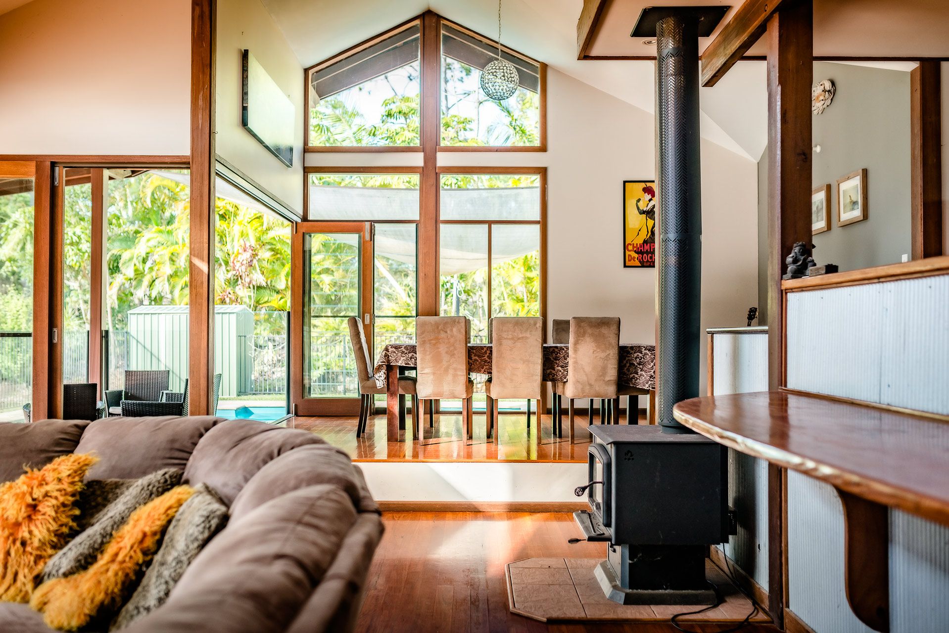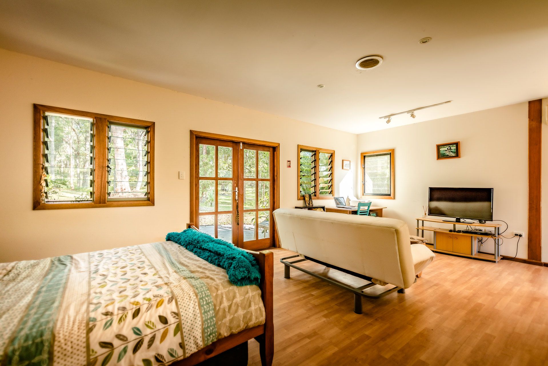 If you're looking for something different then you'll love every aspect of this unique Rosalie Stollery architect design residence. Situated in one the most sought after & exclusive areas for small acreage on the Mid North Coast, this delightful Urunga home is perfectly set on a private 2.8 acre block only 1.4km from the golden sands of Hungry Head Beach. Nestled amid a quiet bush setting with a tranquil leafy outlook, this charming coastal lifestyle property oozes with character. As you enter the home you will be welcomed with warm solid hardwood timber floors, soaring high ceilings, large bi-fold doors and ambient natural light throughout the open plan living area which gently flows onto a large timber outdoor deck, perfect for entertaining. The main residence offers 3 bedrooms plus loft, timber kitchen with gas cook top, cosy wood fireplace & spacious open plan living. Linked by a covered breeze-way is a separate bath house with feature pebble stone tiles, double vanity, shower, spa bath and peaceful leafy surrounds. There is a spacious separate studio which is ideal for guest accommodation or could suit as a parents retreat and offers a walk in robe, ensuite & plenty of room to relax. This impressive family home is designed to take advantage of the sunny northerly aspect and offers a sparkling in-ground salt water pool. Rare opportunity to acquire a unique home in such a location, exceptionally positioned only 3 minutes drive to Hungry Head Beach, 5 minutes to Urunga village shops, 20 minutes from the beautiful historic Bellingen or 20 minutes from the bustling Coffs Harbour & jet airport. To truly appreciate all that it offers an inspection is a must.