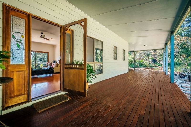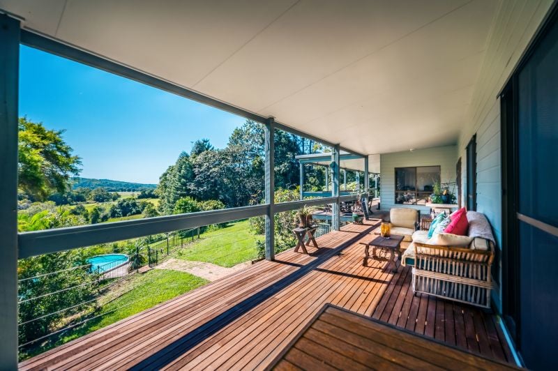 Presenting lifestyle opportunity on 2ha, this North facing property is set back from the road and offers privacy and views. This large unique spacious home features high ceilings, a functional design and craftsman built custom hardwood joinery. As you walk into the home you are greeted by a sense of space and light and a connection with the gardens as every room flows onto the massive hardwood wrap around verandahs with lined ceilings. The verandah's give you access to a cooling summer breeze and a daily procession of birds and native fauna. The versatile floor plan provides the next lucky owners with so many options. An entertainer's kitchen connects to the dining area and lounge. The large private master includes an ensuite and a walk-in robe. Two more bedrooms with a second entertaining area are situated next to the main bathroom. Downstairs is a large room with a third bathroom and laundry. This area could be the family rumpus/media room; teenagers hang out, the office for a home business with NBN, a fourth bedroom, or could easily convert into a self-contained granny flat. This property offers an ideal opportunity to start an organic produce enterprise or self-sufficient lifestyle. The current owners of this beautiful property have managed the property conforming to current Organic Standards. There is ample room for animals and approximately 5000 square metres of organically and biologically improved soil suitable for cottage farm production or a fabulous veggie patch. Importantly water will never be an issue as the property boasts a spring-fed dam and a massive 100,000-rainwater tank. Plus a 20,000-litre tank filled from the dam.