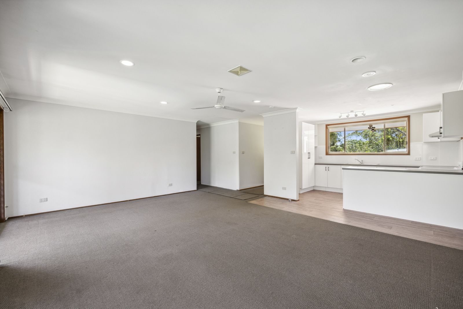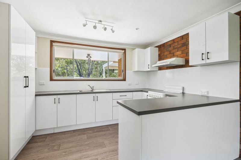 The heart of the home, a renovated kitchen, which flows onto the lengthy entertaining deck, against a backdrop of bushland and flourishing flora and fauna. Each of the three bedrooms features ceiling fans, and 2 with built ins.