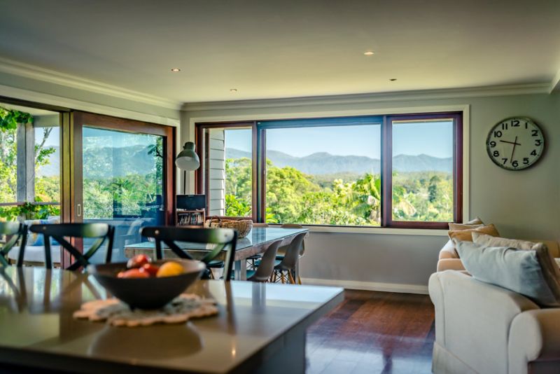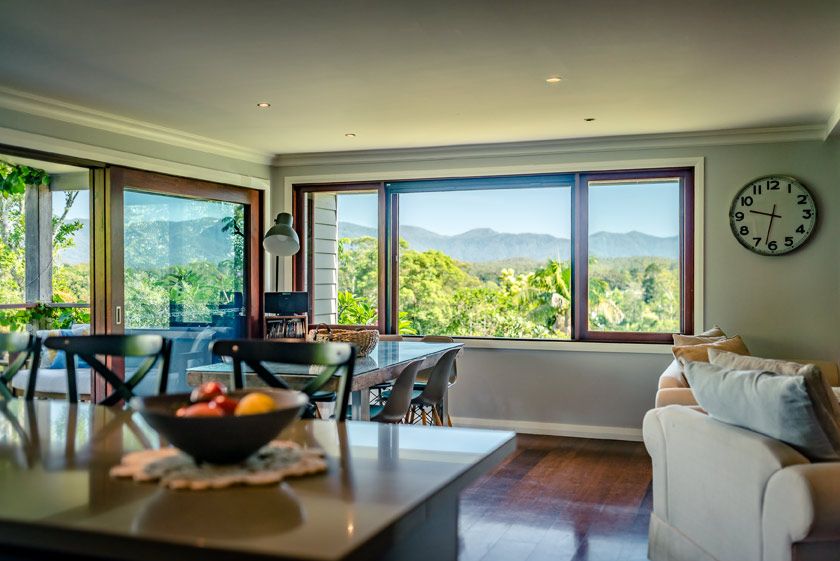 There is ample natural light throughout the open plan living area which gently flows onto the large outdoor entertaining area, where you can enjoy meals, relaxing and catching up with friends with a lovely backdrop to the mountains.