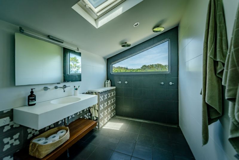 The main bathroom offers a large bath, separate shower, dual flush toilet and there is also a skylight.